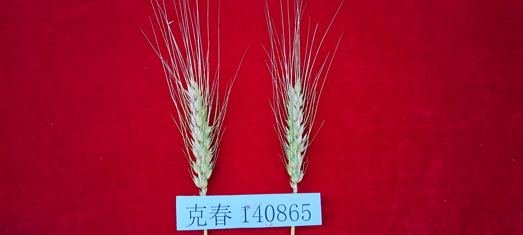 特征特性:克春140865号小麦品种属强筋品种。在适应区出苗至成熟生育日数92天。该品种幼苗直立,株型收敛,株高90.8cm。小穗数一般为11~16个,穗纺锤型,有芒,千粒重34.9g。三年抗病接种鉴定结果:对秆锈病21C3CTR、21C3CFH、34C2MKK、34MKG等均表现为免疫,中感赤霉病,中感根腐病。经农业部谷物及制品质量监督检验测试中心(哈尔滨)2019~2020年连续两年分析,蛋白质含量15.07%~15.14%,湿面筋含量31.9%~32.7%,稳定时间3.7分钟~14.3分钟,容重806~828g/L,抗延阻力367~603E.U,延伸性176~202mm。