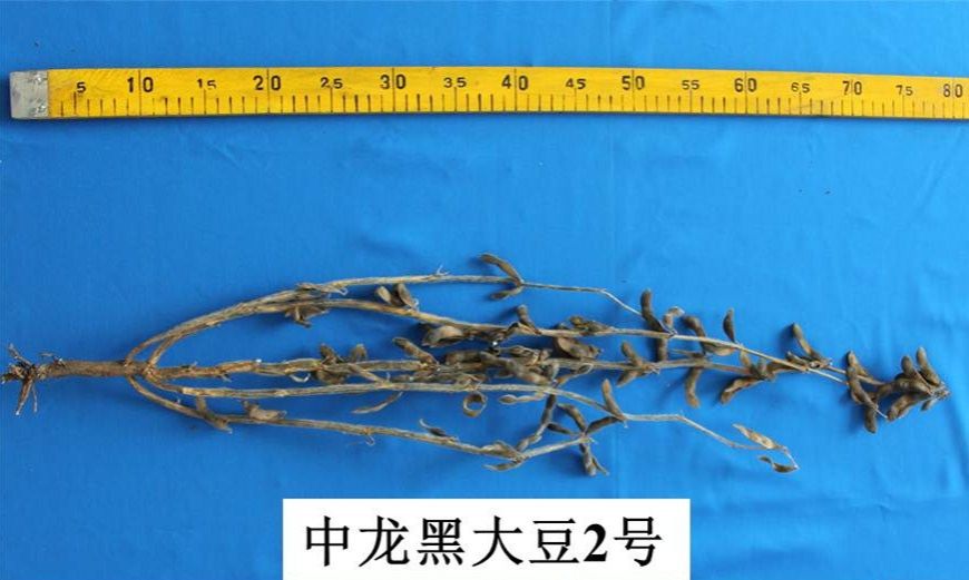 中龙黑大豆2号在适应区出苗至成熟生育日数115天左右,需≥10℃活动积温2450℃左右。该品种为亚有限结荚习性。株高80厘米左右,有分枝,紫花,圆叶,灰色茸毛,荚弯镰形,成熟时呈黑色。籽粒圆形,种皮黑色,种脐黑色,有光泽,百粒重18克左右。二年平均品质分析结果:蛋白质含量43.02%;脂肪含量19.62%。二年抗病接种鉴定结果:中抗灰斑病。