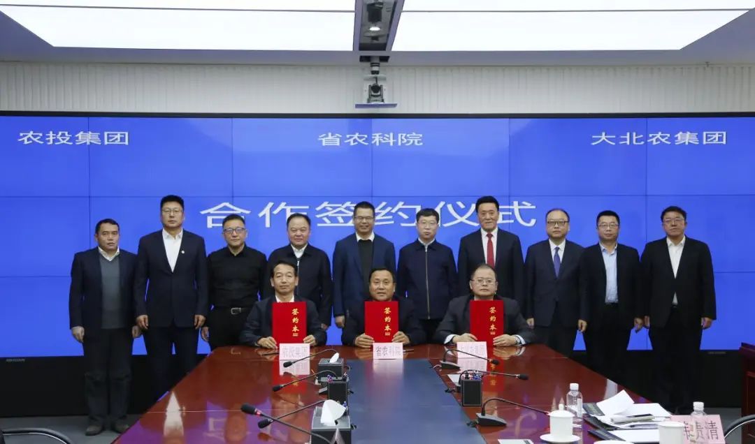 我院与黑龙江省农业投资集团有限公司、北京大北农科技集团股份有限公司签署了三方战略合作协议,食品加工研究所与哈尔滨市胜武食品有限公司和哈尔滨善道农业科技有限公司分别签署了合作协议。