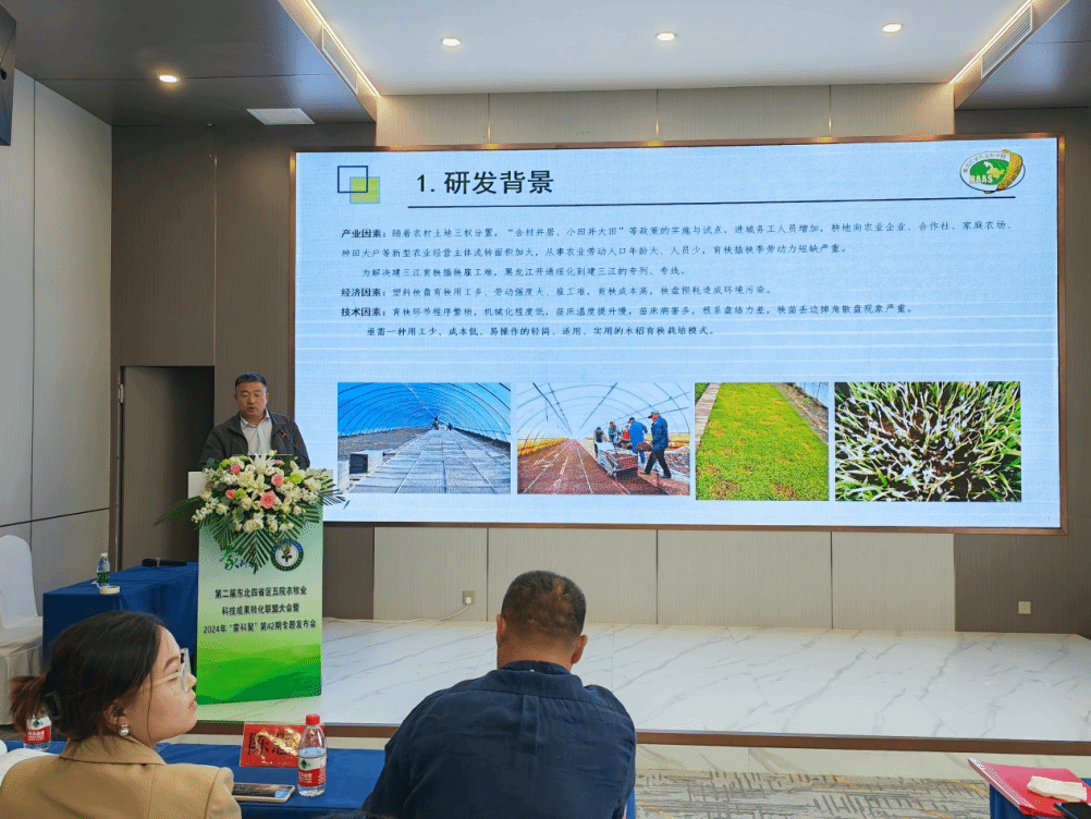 会上,我院共推介科研成果16项,耕作栽培所“寒地玉米胎须高效生产及精深加工”和生物技术研究所“水稻绿色生物无盘轻简低碳育秧集成技术”2项成果进行了现场路演推介;“黑科94”“龙粳3034”“绥玉58”等14项成果参加了视频发布。