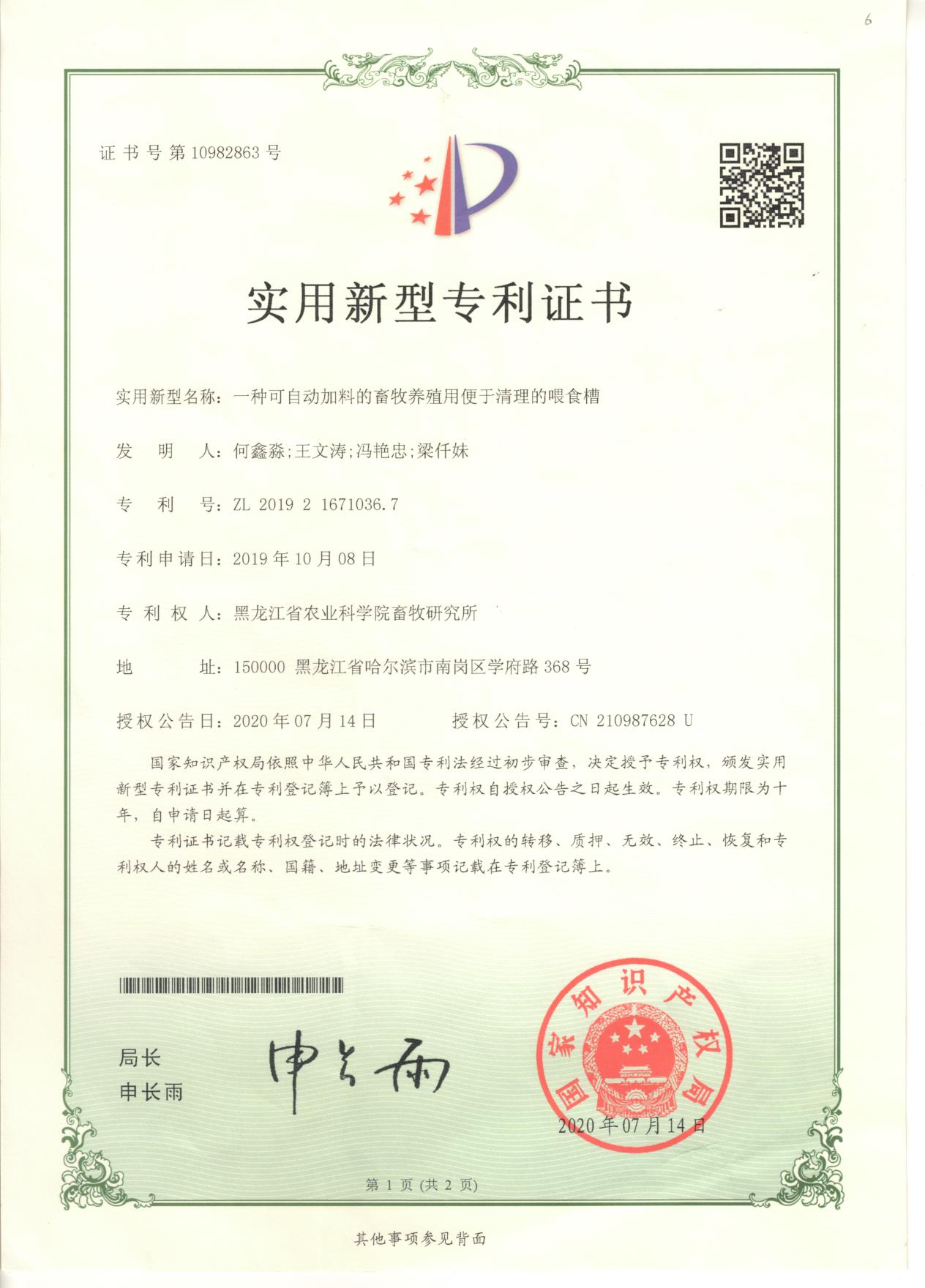 实用新型专利:本实用新型属于畜牧养殖技术领域 , 尤其涉及一种可自动加料的畜牧养殖用便于清理的喂食槽 , 包括喂养槽 , 所述喂养槽的左侧设有传料框 , 所述传料框的左侧设有存料框 , 所述存料框的内腔固定连接有斜板 , 所述存料框右侧的底部连通有传料管 ,所述传料管的右侧与传料框的连接处相连通 , 所述传料框的底部固定连接有减速电机 , 所述减速电机的输出端贯穿传料框并固定连接有旋转杆 , 所述旋转杆的表面固定连接有送料绞龙 , 所述旋转杆的顶部活动连接有轴承 ; 解决了现有市场上的畜牧养殖用喂食槽不具备自动加料且便于清理的功能 , 工作人员喂食以及清理费时费力 , 劳动强度大 , 大规模养殖人力成本较大 , 不利于畜牧业发展的问题 。