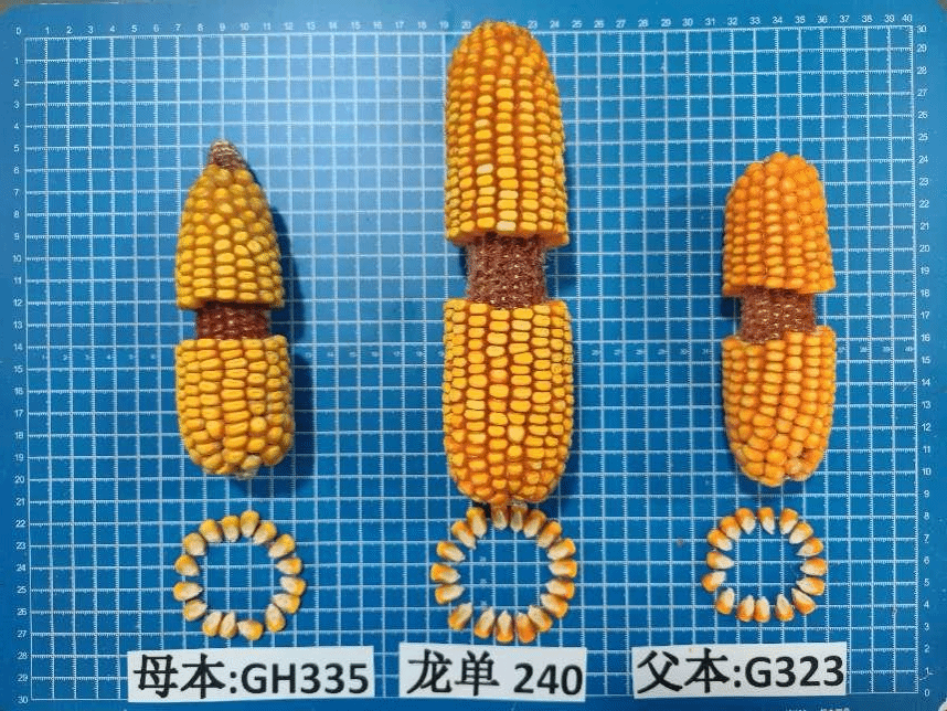 该品种处于龙科玉米科企联合体2区生产试验阶段。属普通玉米品种。在适应区出苗至成熟生育日数为125天左右,需≥10℃活动积温2600℃左右。该品种幼苗期第一叶鞘紫色,叶片深绿色,茎绿色。雄穗一级分枝6~8个,颖壳绿色,花丝绿色,花药紫色。株高301厘米,穗位高115厘米,成株可见17片叶。果穗长筒型,穗轴红色,穗长21.6厘米,穗粗5.4厘米,穗行数18~20行,籽粒马齿型、粒色黄色,百粒重36.3克。两年品质分析结果:容重757~790克/升,粗蛋白10.02%~11.59%,粗脂肪3.14%~4.33%,粗淀粉73.66%~74.84%。三年抗病接种鉴定结果:中抗至感大斑病,丝黑穗病发病率10.5%~15.2%,茎腐病发病率0.0%~2.1%,高抗至中抗镰孢穗腐病。