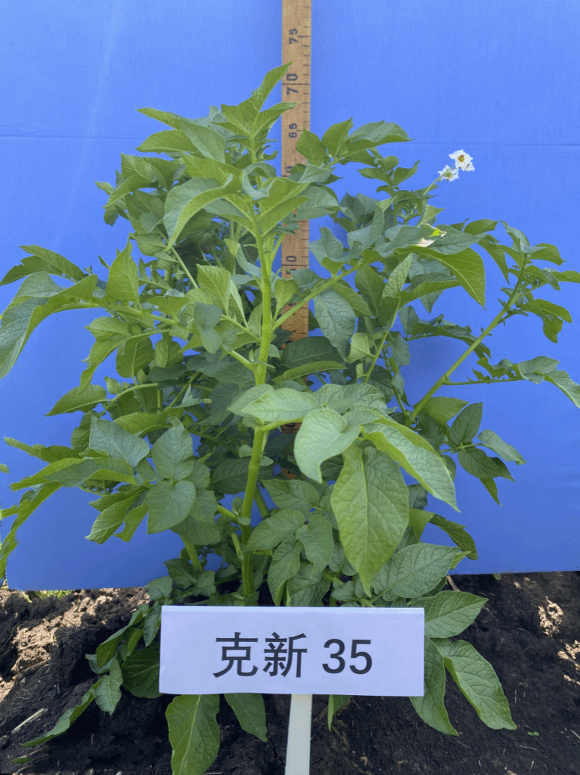 克新35具有高产、优质、食味优、中抗晚疫病、中抗PVX、中抗PVY病毒病的特点,可以达到促进薯农增收的目的。中熟16%的淀粉也可以用于淀粉加工,增加我省马铃薯加工产业的链条,带动地方经济发展。