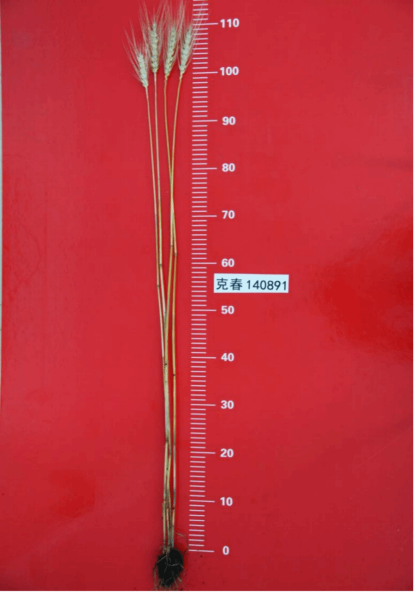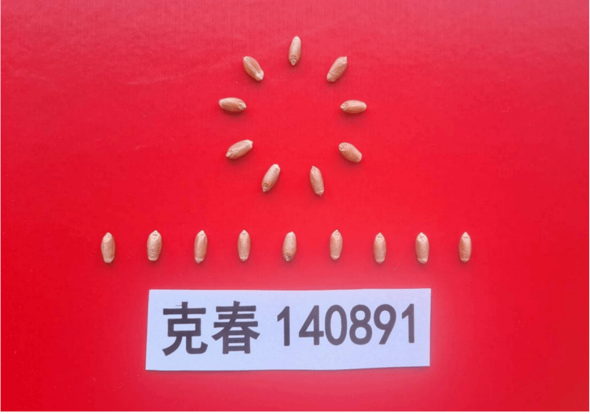 特征特性:克春140891小麦品种属中筋品种。在适应区出苗至成熟生育日数88天。该品种幼苗直立,株型收敛,株高105.6cm。小穗数一般为13~18个,穗纺锤型,有芒,千粒重35.3g。