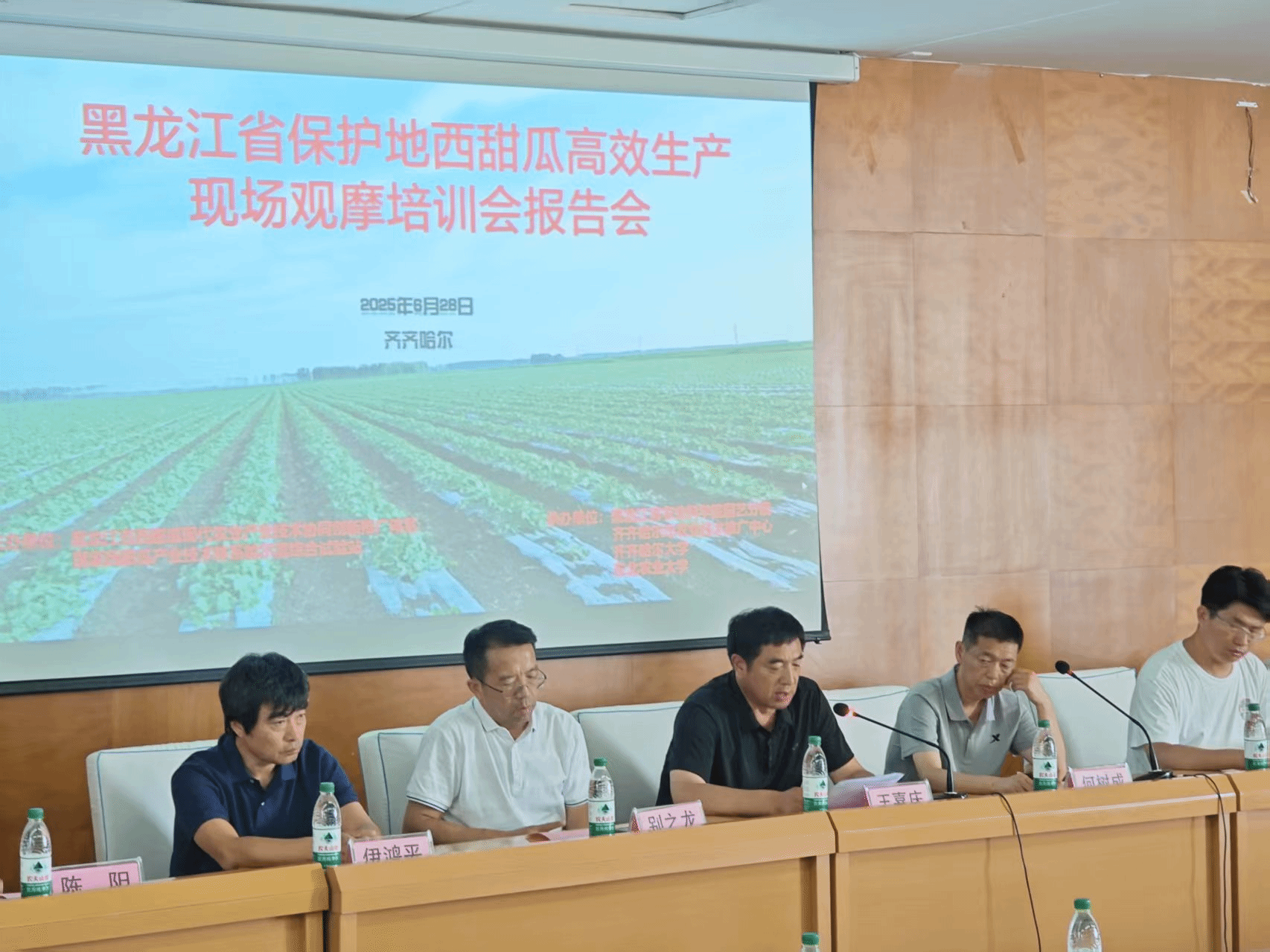 6月28日,黑龙江省保护地西甜瓜高效生产现场观摩培训会在鹤城齐齐哈尔召开,来自国家与省西甜瓜产业体系、市农技推广中心、企业代表、种植户代表80多人齐聚鹤城,为黑龙江省西甜瓜产业发展凝聚智慧、出谋划策。此次会议由黑龙江省西甜瓜现代农业产业技术协同创新推广体系、国家西甜瓜产业技术体系哈尔滨综合试验站发起,麻豆视频 园艺分院、齐齐哈尔市农业技术推广中心、齐齐哈尔大学及东北农业大学等共同承办。院党组成员、副院长朱龙付出席西甜瓜高效生产现场会。
