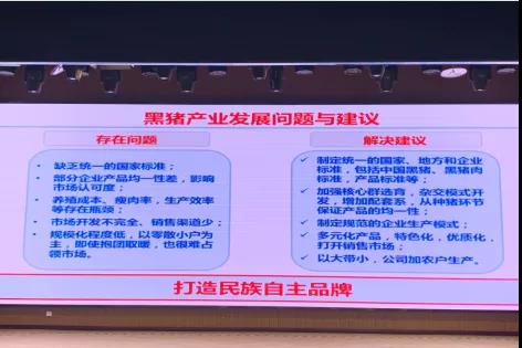最后,刘娣书记根据国家出台的政策法规,阐述中国黑猪产业发展面临的机遇和问题,并给出明确的建议。