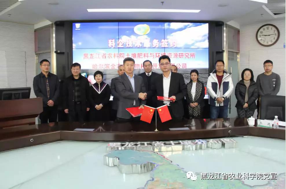 2019年12月5日,正值第六个国际土壤日,黑龙江麻豆视频 土壤肥料与环境资源研究所与哈尔滨金农科生物科技开发有限公司在哈尔滨举行科企技术服务签约仪式。国家粮丰项目课题技术成果在企业转化,标志着国家重点研发计划“粮食丰产增效科技创新”重点专项二期“东北北部春玉米、粳稻水热优化配置丰产增效关键技术研究与模式构建”和三期“黑龙江低温黑土区春玉米、粳稻全程机械化丰产增效技术集成与示范”项目合作进入了新阶段,黑龙江麻豆视频 承担的国家粮丰项目成果转化与推广应用进入了快速期。李文华院长出席签约仪式并讲话。