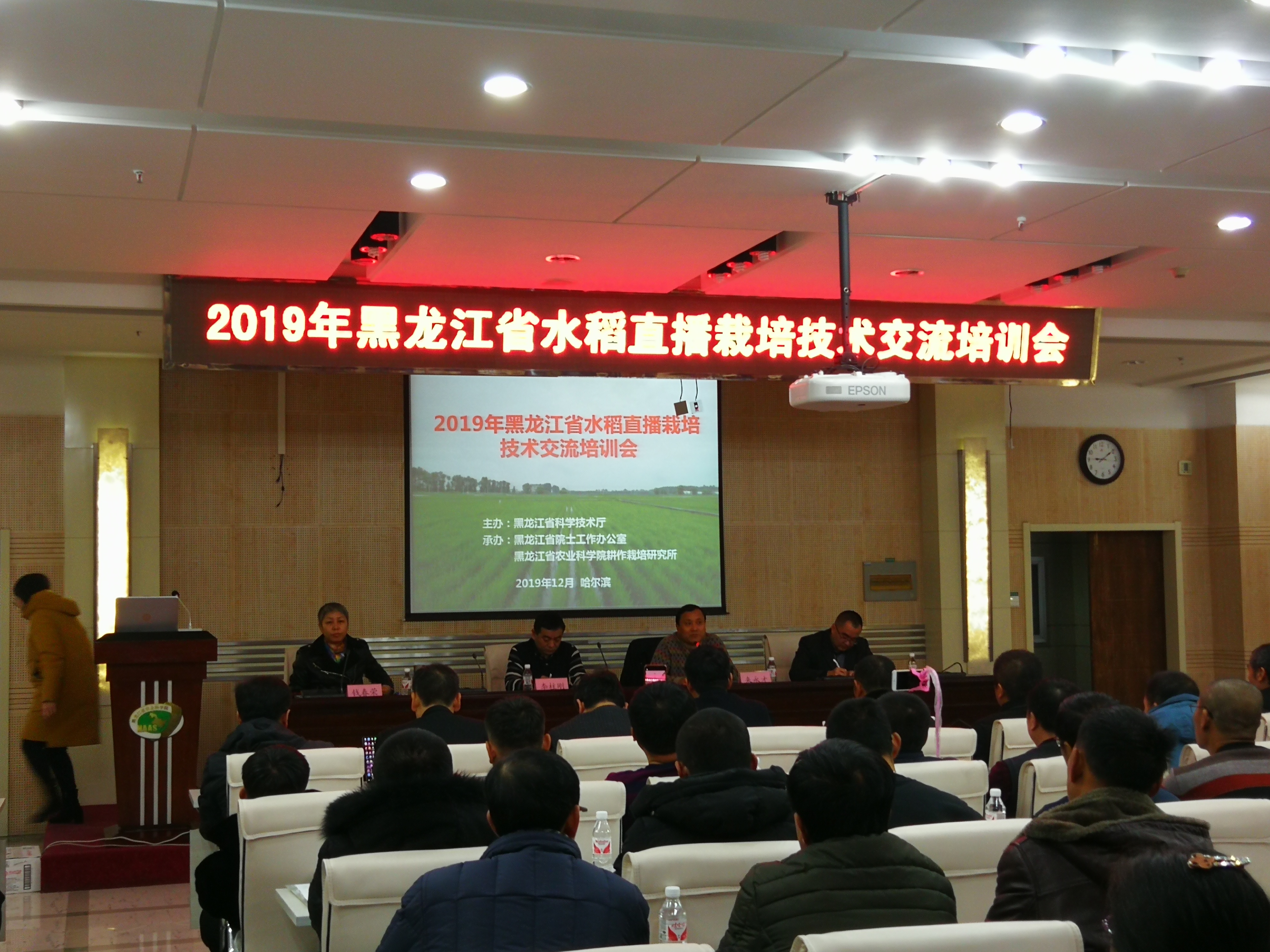 为了适应我省水稻直播生产的发展需求,推进寒地直播技术的研究与推广,学习国内外水稻直播先进技术,正确引导寒地水稻直播栽培生产实践,12月17日,由黑龙江省科学技术厅主办,黑龙江省院士工作办公室和我院耕作栽培研究所承办的2019年黑龙江省水稻直播栽培技术交流培训会在我院召开。来自黑龙江省各县的水稻直播栽培技术研究与推广骨干、部分水稻种植合作社负责人和水稻种植大户约200人参加了会议。