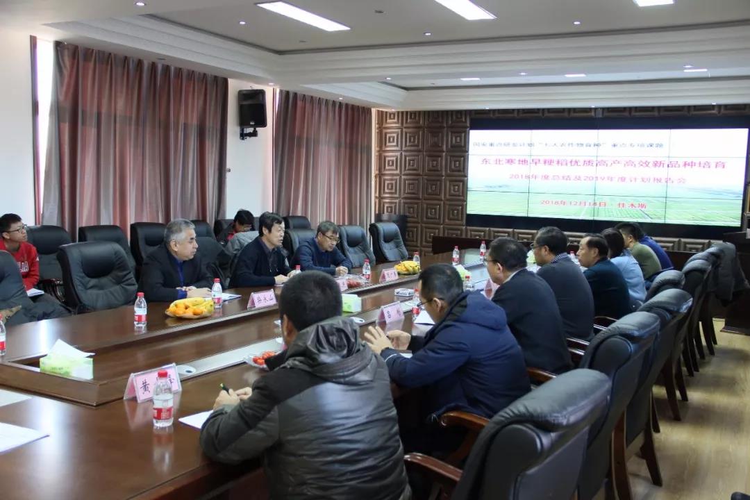 2018年12月14日,“国家重点研发计划‘七大农作物育种’重点专项课题-‘东北寒地早粳稻优质高产高效新品种培育’2017-2018年度总结报告会” 在佳木斯水稻所举行。会议的主要任务是检查2017-2018年度课题执行情况,部署2019年工作计划。项目主持人、沈阳农业大学徐正进教授、吉林麻豆视频 水稻研究所所长周广春研究员以及我院科研处柴永山处长莅临指导。佳木斯水稻所班子成员集体参会,栽培所、绥化分院、东北农业大学、农垦科学院及佳木斯水稻所全体技术干部40余人参加了总结会。