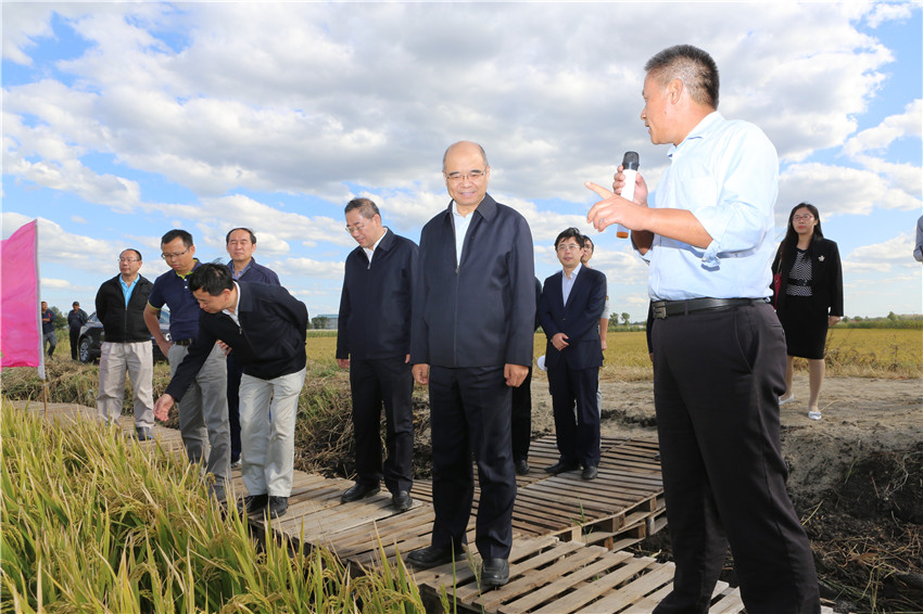 9月11日-12日,中国科学院北方粳稻分子育种联合研究中心2017年度现场会及学术交流会在哈尔滨召开。中国科学院副院长相里斌、中国科学院院士李家洋率中科院北京基因组研究所所长薛勇彪、遗传与发育生物学研究所所长杨维才、植物研究所书记种康、长春分院院长王利祥、遗传与发育生物学研究所党委书记胥伟华及姚善国研究、程祝宽研究员、储成才研究员等20余位领导和专家到我院黑龙江现代农业园区实地考察了中国科学院先导专项“分子模块设计育种创新体系”成果在黑龙江省的落地情况。黑龙江省副省长胡亚枫,省科技厅厅长杨廷双,省院士办主任朱琳,中国科学院北方粳稻分子育种联合研究中心主任、我院院长李文华,党组书记刘娣、副院长来永才全程陪同考察、交流。 11日晚,黑龙江省委副书记、省长陆昊在哈尔滨会见了中国科学院副院长相里斌一行。陆昊省长对相里斌副院长一行来哈推动省院合作表示欢迎,对中科院长期以来支持黑龙江省发展表示感谢。陆昊省长说,育种是国家农业发展重要战略,黑龙江作为农业大省应有更大的作为,双方合作要把国家战略目标和黑龙江省农业产业发展需求相结合。双方共建北方粳稻分子育种联合研究中心以来,取得了很多合作成果,希望认真总结过去取得的成绩和存在的差距,进一步确定新的合作目标,制定务实合作举措,省政府会积极给予支持。相里斌副院长表示,中科院将落实好省院共建协议,不断拓展合作空间,提升合作水平,加快成果转化,实现共同发展。