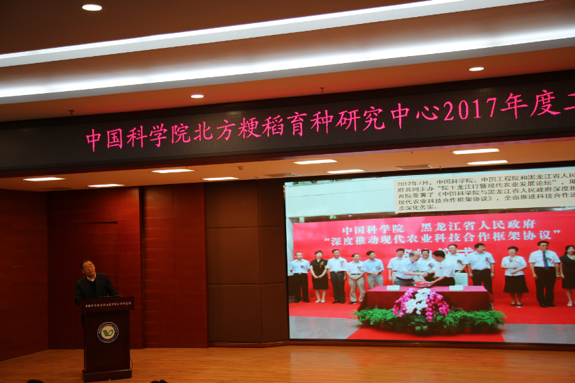 中国科学院北方粳稻分子育种联合研究中心2017年度工作会议于3月8日在北京召开。本次会议以大会报告的形式将2016年中国科学院北方粳稻分子育种联合研究中心取得的合作研究成果进行了汇报。 2008年,中国科学院与黑龙江省依托我院共同筹建了中国科学院北方粳稻分子育种联合研究中心,并挂靠在我院。近年来,在合作双方的高度重视与支持下,联合研究中心的研究领域从最初的寒地水稻分子模块解析、挖掘和组装设计育种,拓展到玉米、大豆、耕作栽培、作物生理生态等多个方面,并在转基因、作物种质资源筛选、品种设计育种、寒地农田土壤长期变化、玉米株型产量品质等农艺性状改良、野生大豆资源的利用及专用豆品种改良、饲料油菜复种、水稻多层工厂化育苗等领域开展了卓有成效的研究。