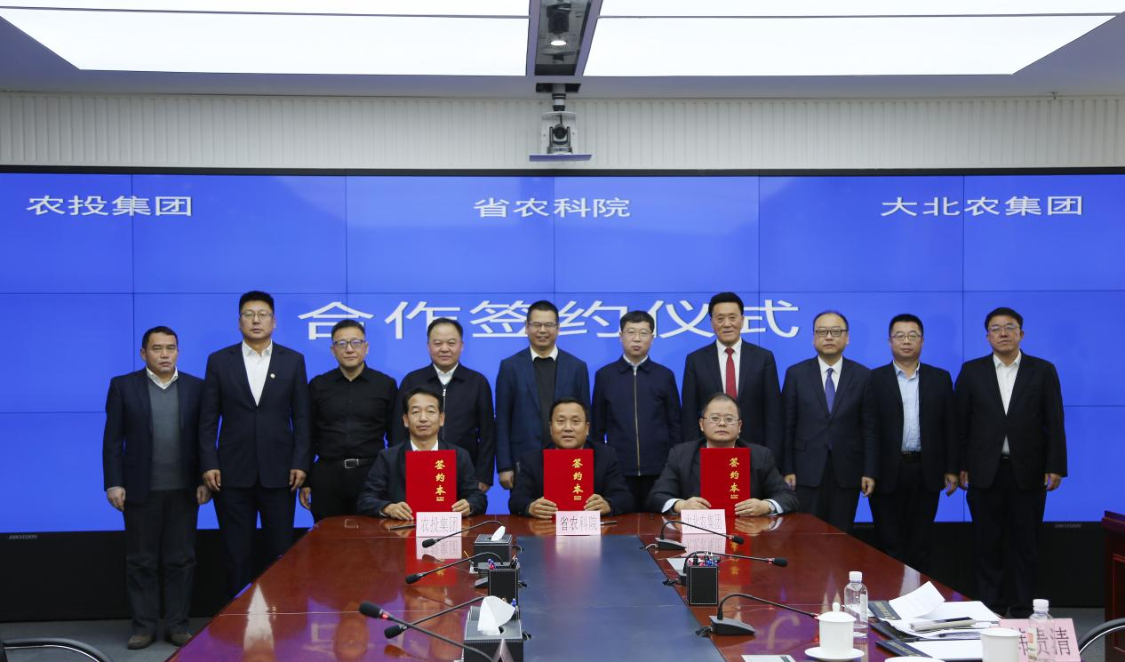 我院与黑龙江省农业投资集团有限公司、北京大北农科技集团股份有限公司签署了三方战略合作协议,食品加工研究所与哈尔滨市胜武食品有限公司和哈尔滨善道农业科技有限公司分别签署了合作协议。