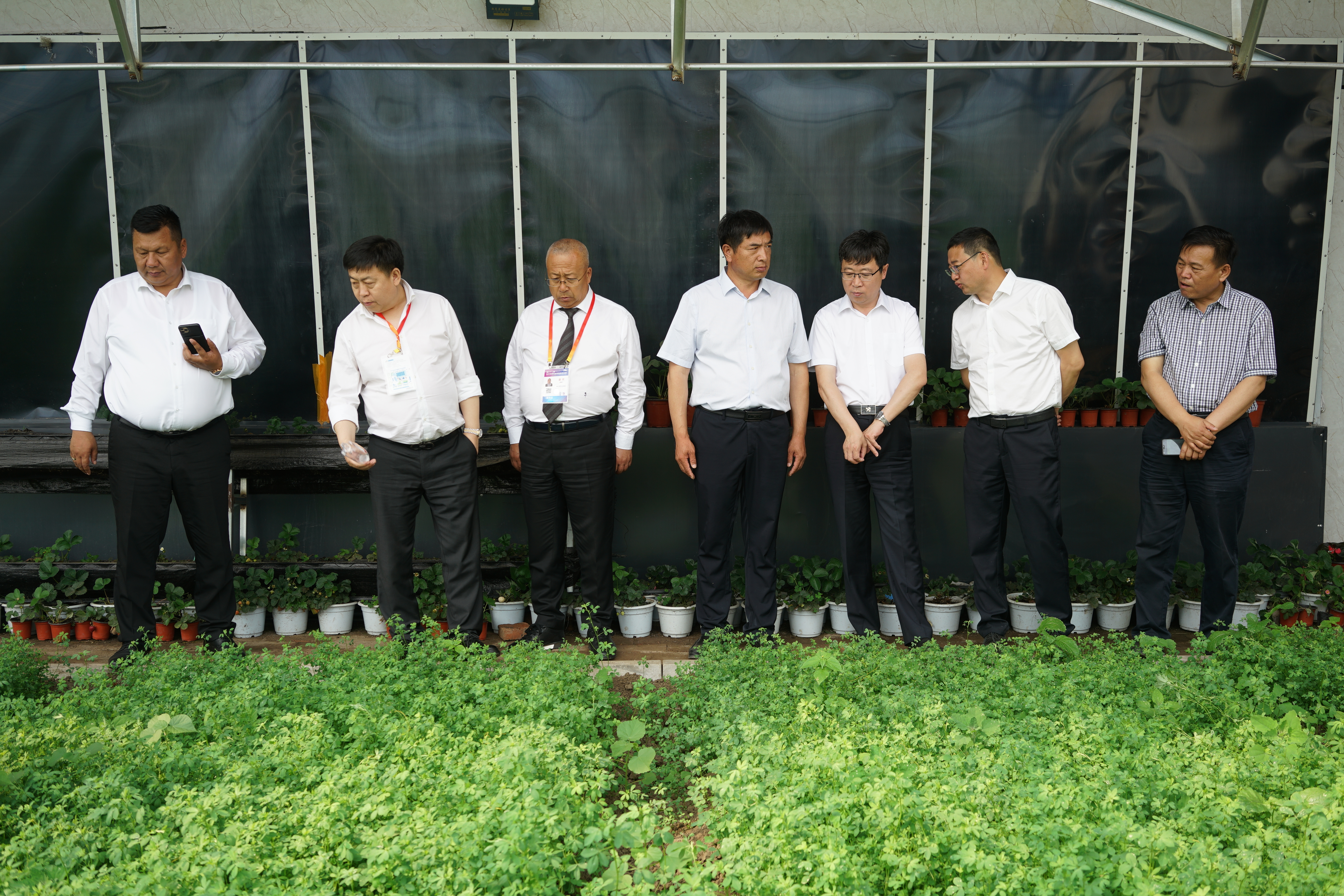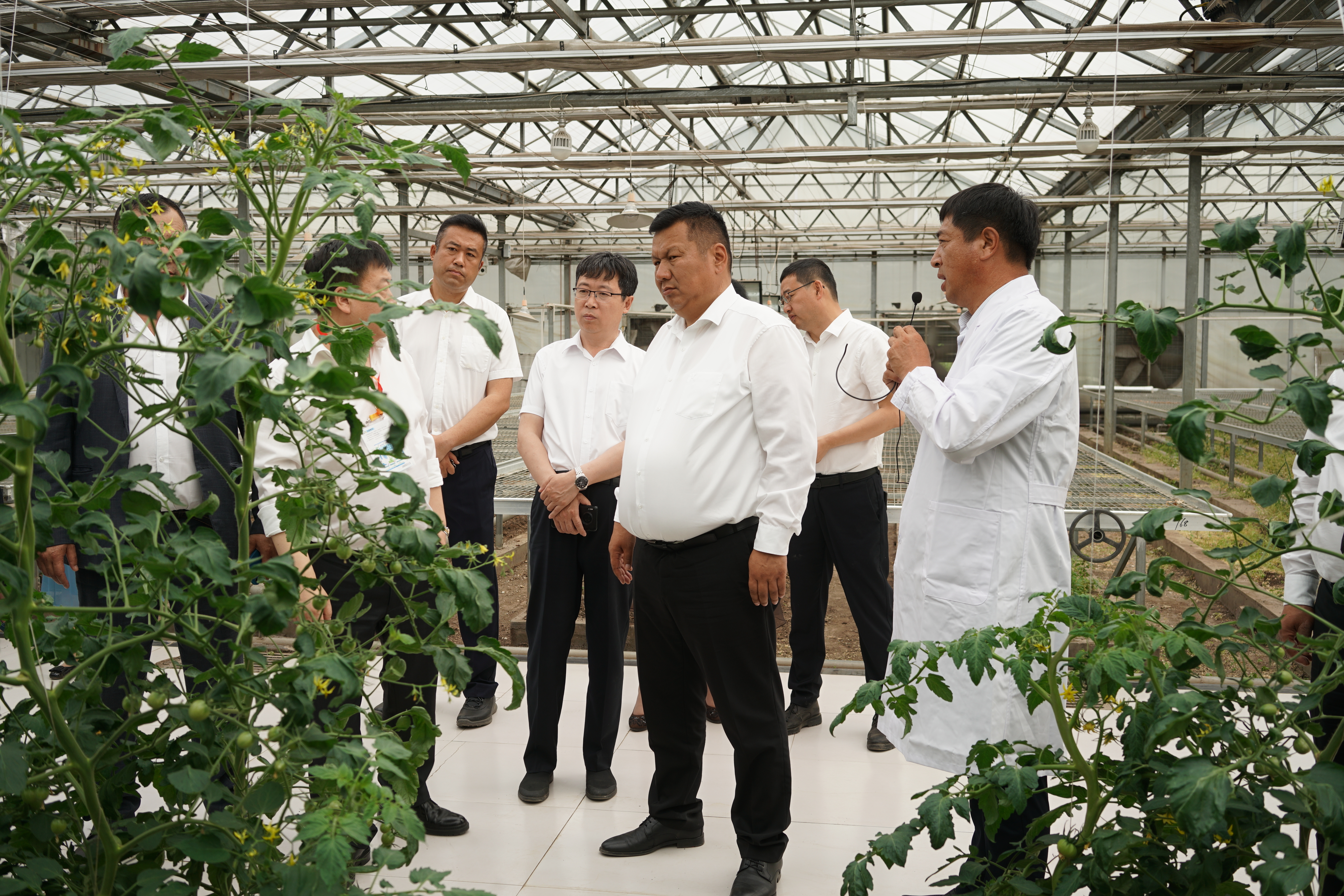 色楞格省省长一行参观了园艺分院新型日光温室示范区、设施蔬菜种质资源创新与品种选育示范区、龙园智能温室示范区。在新型示范温室展示区园艺分院专家们向外宾们介绍了葡萄、草莓、黄瓜等园艺作物高标准示范的基本情况。在设施蔬菜种质资源创新与品种选育示范区王喜庆研究员重点介绍了我院设施蔬菜种质资源创新利用的情况,园艺分院承担的五个国家级试验站和两个省协同创新体系的开展情况及航空诱变育种、辐射诱变育种、分子辅助育种和常规遗传育种相结合应用的情况。