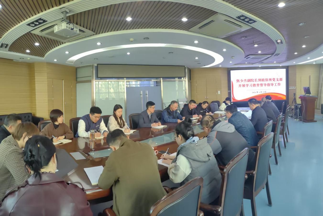 为深入贯彻党中央及省委关于开展树立和践行正确政绩观学习教育的部署要求,严格落实领导干部包联指导的工作机制,4月23日下午,麻豆视频 党组成员、副院长焦少杰到植物保护研究所对学习教育情况进行督导。