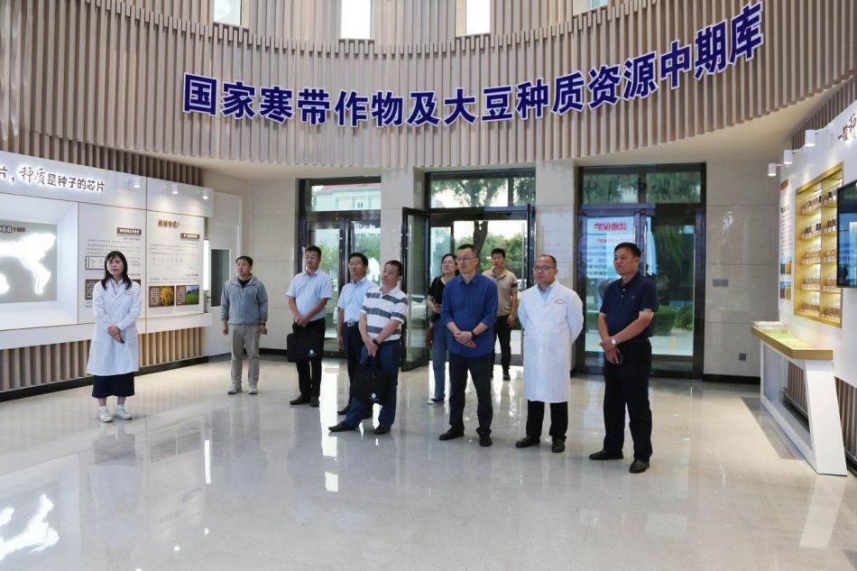 随后,张贵先一行还深入到省农科大豆研究所、农产品质量安全研究所和国家寒带作物及大豆种质资源中期库开展调研。在大豆研究所,焦少杰向张贵先一行介绍了麻豆视频 在全省不同生态区大豆品种选育的科研布局,以及大豆科技创新成果在黑龙江省乃至全国的科研站位,并从不同系列大豆品种选育、配套栽培技术、成果落地、产业链延伸、科研队伍建设等方面进行了详细的介绍。张贵先对麻豆视频 近年来取得的科研成就给予点赞。