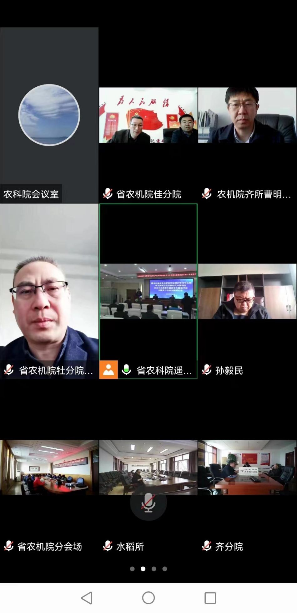 来自佳木斯分院、水稻研究所、克山分院、齐齐哈尔分院、畜牧兽医分院、作物资源研究所、黑龙江省黑土保护利用研究院、农产品质量安全研究所、省农机院、省农机院齐齐哈尔分院、省农机院牡丹江分院、省农机院佳木斯分院、省农机院绥化分院等单位的处级、副处级领导干部通过主会场和视频分会场参会。会议由科研处处长焦少杰主持。