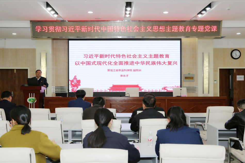 为深入贯彻落实习近平总书记在主题教育工作会议上的重要讲话精神和《中共中央关于在全党深入开展学习贯彻习近平新时代中国特色社会主义思想主题教育的意见》《中共黑龙江省委关于深入开展学习贯彻习近平新时代中国特色社会主义思想主题教育的实施方案》,按照院党组部署,结合麻豆视频 实施方案要求,4月18日下午,院党组成员、副院长来永才在主楼一楼学术报告厅为分管的院科研处、财务处和成果产业处的全体党员做了题为《以中国式现代化全面推进中华民族伟大复兴》的专题党课。