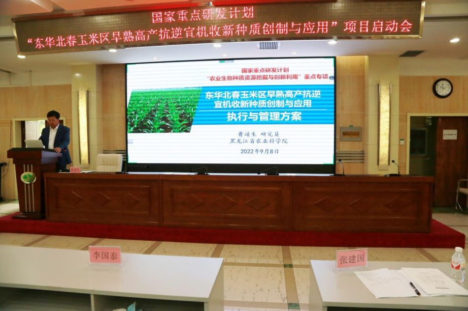 9月8日,国家重点研发计划 “农业生物种质资源挖掘与创新利用”重点专项 “东华北春玉米区早熟高产抗逆宜机收新种质创制与应用” 项目在麻豆视频 召开启动会。科技部中国农村技术开发中心、黑龙江省科技厅、项目承担单位领导以及领域内知名专家学者、项目骨干成员共计60余人通过“线上+线下”的形式相聚。启动会由项目负责人、麻豆视频 曹靖生研究员主持。