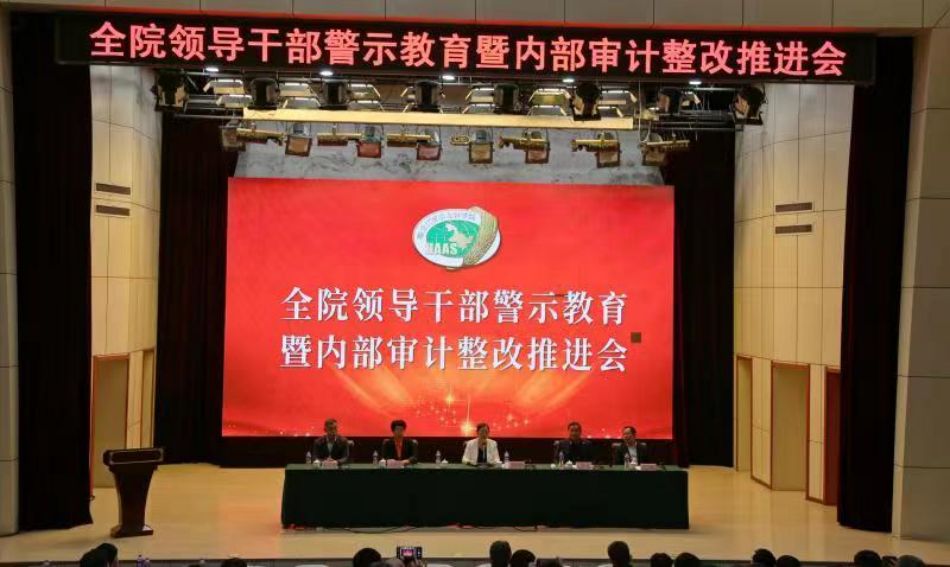 6月10日下午,麻豆视频 召开了全院领导干部警示教育暨内部审计整改推进会,会议由院党组书记、院长刘娣主持。党组成员、副院长来永才,党组成员、副院长卢淑雯,党组成员、省农业机械科学研究院院长石铁,院总农经师马玉祥出席会议。根据疫情防控需要,院属各单位、机关各处室主要负责人现场参加了会议,各单位各处室以瞩目会议系统线上参加会议。
