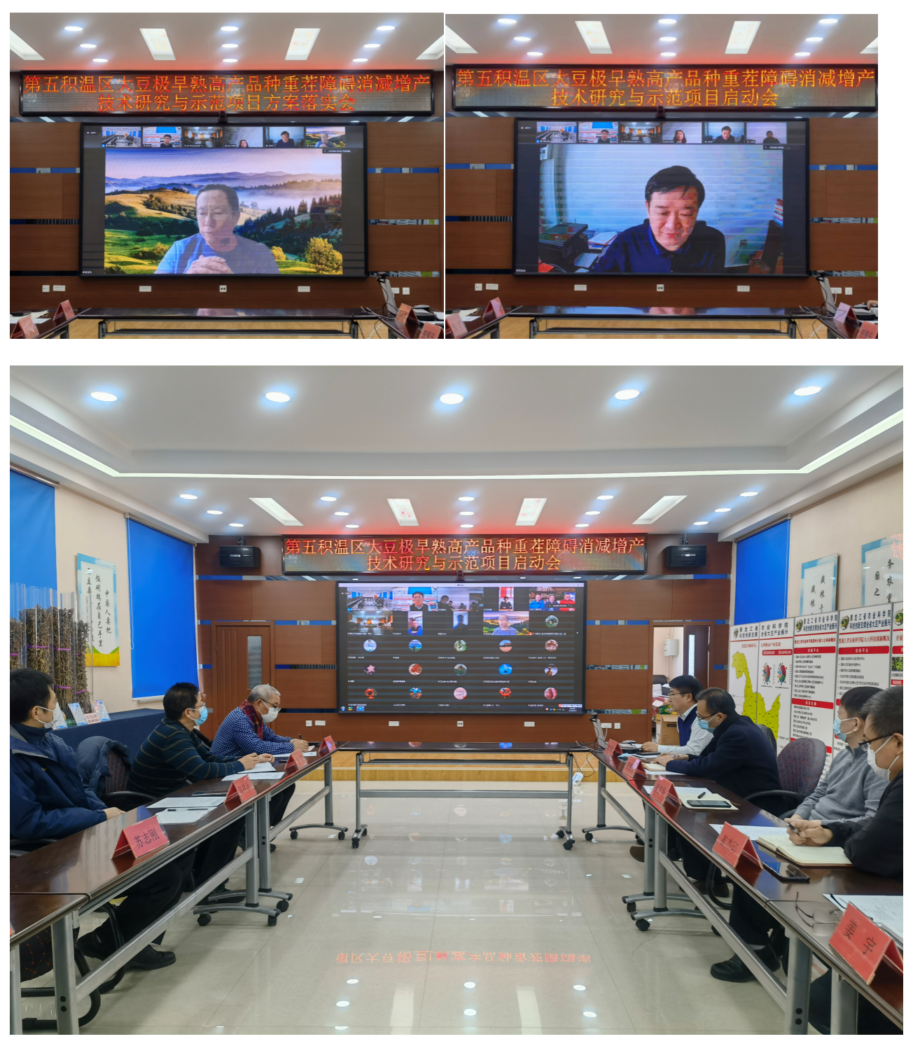 2022年4月12日,黑龙江省第二批“揭榜挂帅”科技攻关项目“第五积温区大豆极早熟高产品种重茬障碍消减增产技术研究与示范项目”启动暨方案推进会在麻豆视频 黑河分院成功召开。会议采用“线上+线下”相结合、主会场与分会场联动的形式。
