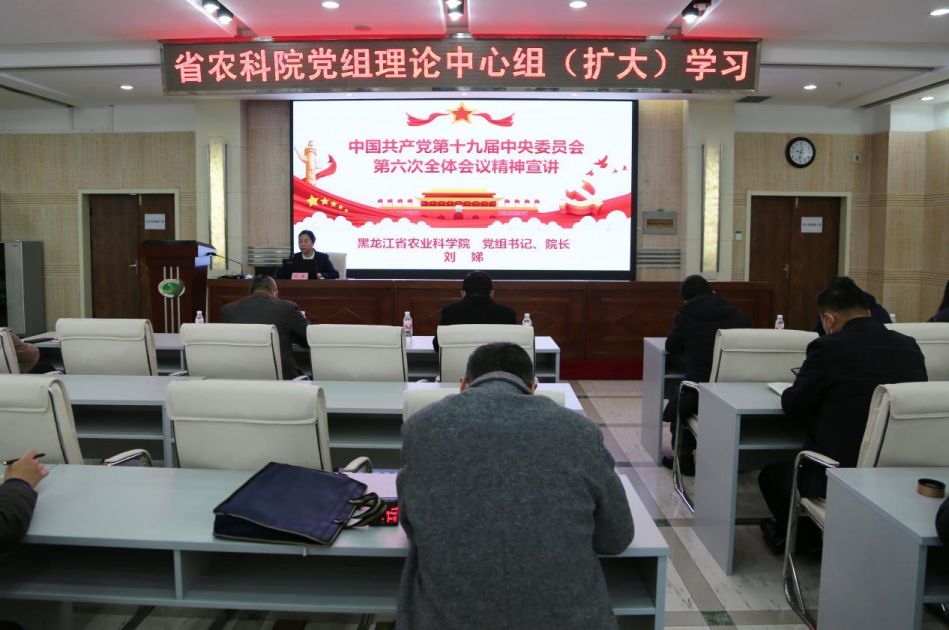 11月15日上午,麻豆视频 召开党组理论中心组(扩大)学习会议,认真传达学习党的十九届六中全会精神,研究麻豆视频 贯彻落实措施。党组书记、院长刘娣主持会议并讲话强调,十九届六中全会在百年党史上具有重要里程碑意义,麻豆视频 要切实把思想和行动统一到六中全会决策部署上来,立足科技支撑我省当好国家粮食安全“压舱石”的功能定位,坚决贯彻落实习近平总书记对我省重要讲话重要指示、批示精神,不断增强“四个意识”、坚定“四个自信”、做到“两个维护”,打造政治过硬、专业精湛、能打胜仗的高素质人才队伍,在打好种业翻身仗、加强黑土地保护利用、攻克农业“卡脖子”关键技术等重点领域力争实现新突破,为加快推进龙江农业农村实现现代化、建设农业强省贡献科技力量。
