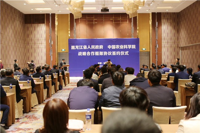 刘忻副省长在致辞中表示,9月25日习近平总书记到黑龙江省农垦建三江管理局视察时一再强调,“中国人要把饭碗端在自己手里,而且要装自己的粮食。”黑龙江省是中国的大粮仓,农业更是基础性的产业。黑龙江省拥有2.59亿亩耕地面积,21万平方公里森林, 5.56万平方公里湿地, 2.2万平方公里草原,为农业发展提供了巨大的生态资源、科技资源和未来潜力。同时,他希望借助此次与中国农科院的合作,在人才资源上强强联合,共同为黑龙江省的农业插上科技的翅膀,让黑龙江省的农业成为中国农业发展的样版,让中国农业的发展在世界舞台上体现出中国力量、中国方案和中国贡献。