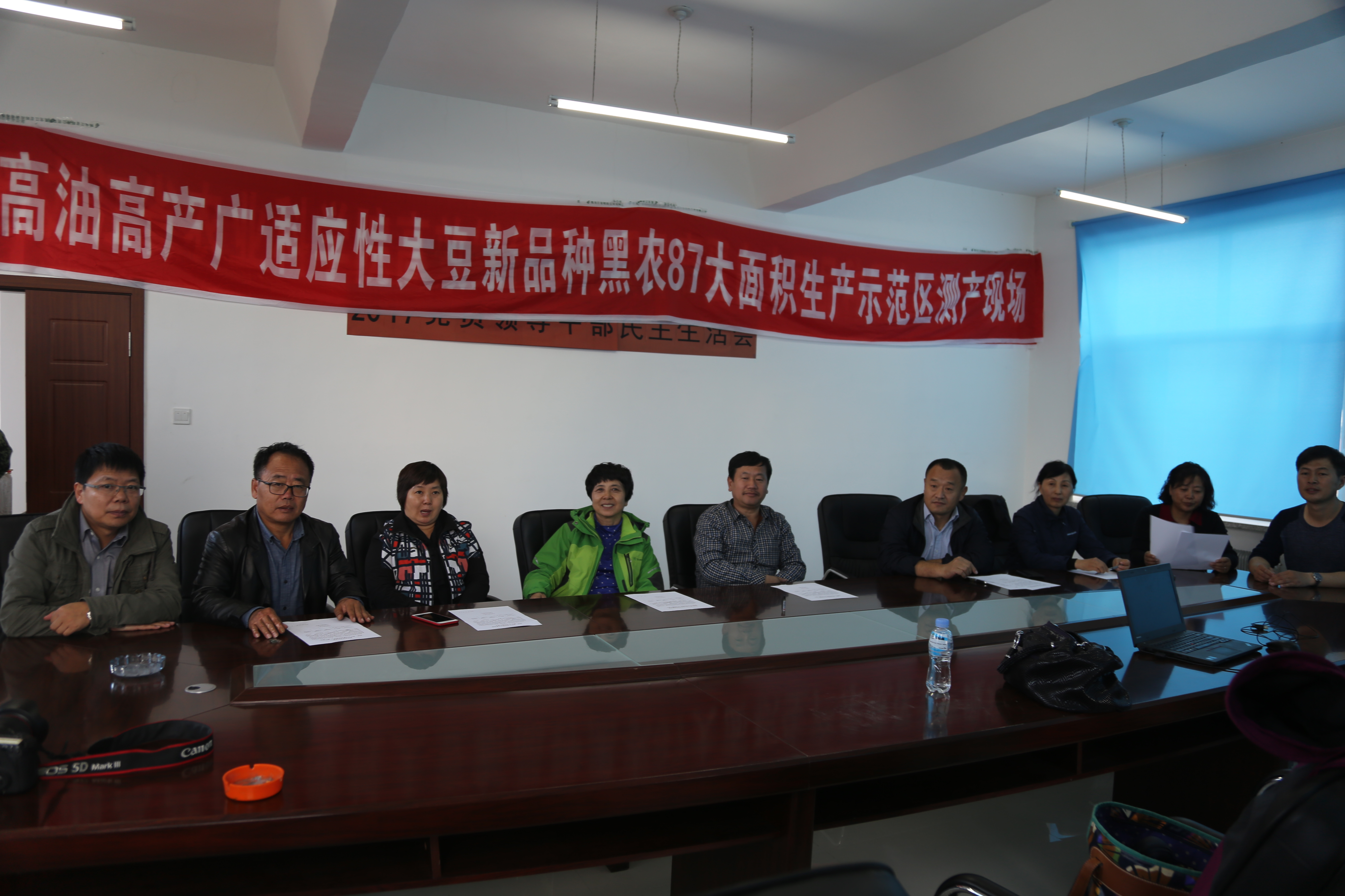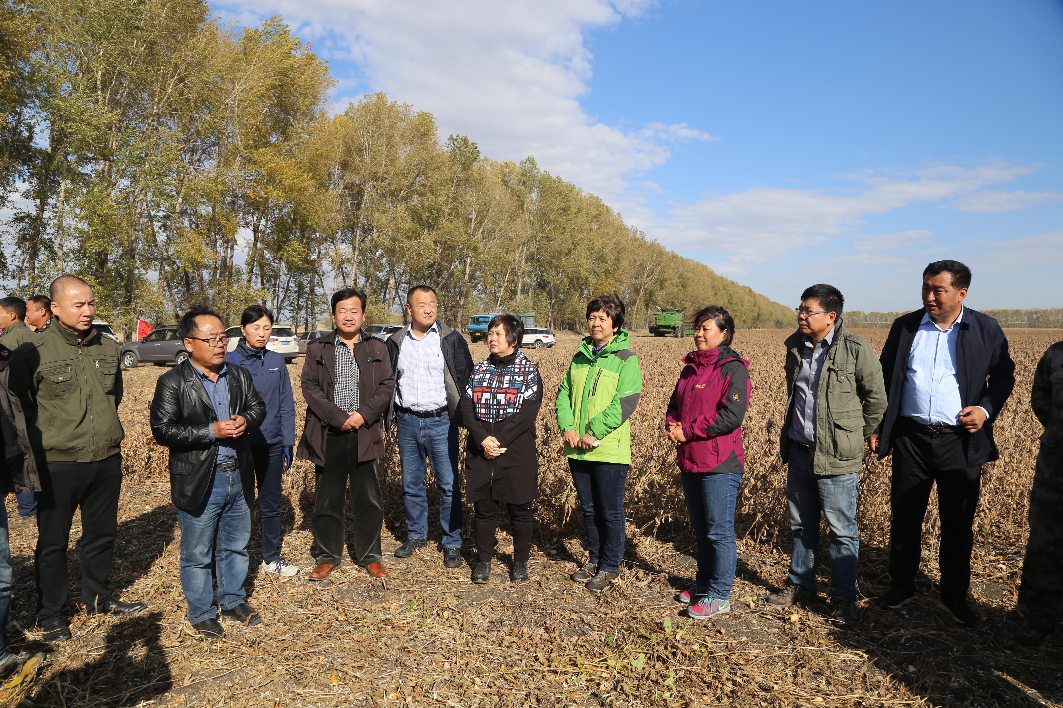 现场会由我院大豆所王广金所长主持。东北农业大学龚振平教授、黑龙江省科技厅农村处处长刘淑艳、我院科技推广处处长马冬君、双鸭山市种子管理处处长王雷、黑龙江省农垦总局红兴隆农业科学研究所于凤瑶研究员联合组成了测产专家组,黑龙江省大豆产业技术协同创新体系首席科学家龚振平教授任专家组组长。