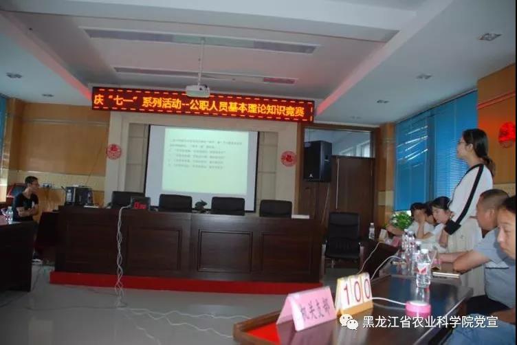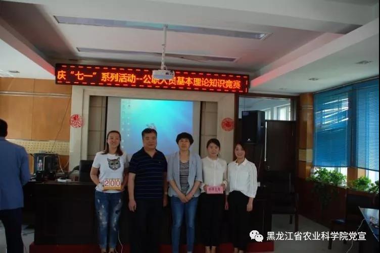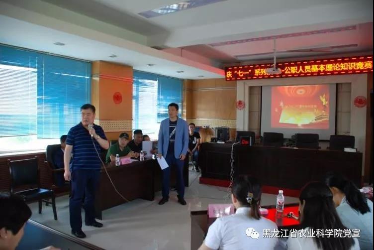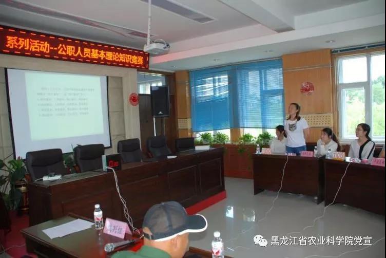 2018年6月19日,浆果研究所举办了“国家公职人员应知应会基本理论知识竞赛”。此次竞赛以党支部为单位,有机关支部、科研支部、产业支部三支参赛队伍,共九名队员参加,工作组由裁判组,记录监督组,和场务组组成。竞赛采用必答和抢答的方式进行,题目出自《国家公职人员应知应会基本理论知识1000题》。经过精彩激烈的角逐,科研支部最终获得了比赛的冠军。