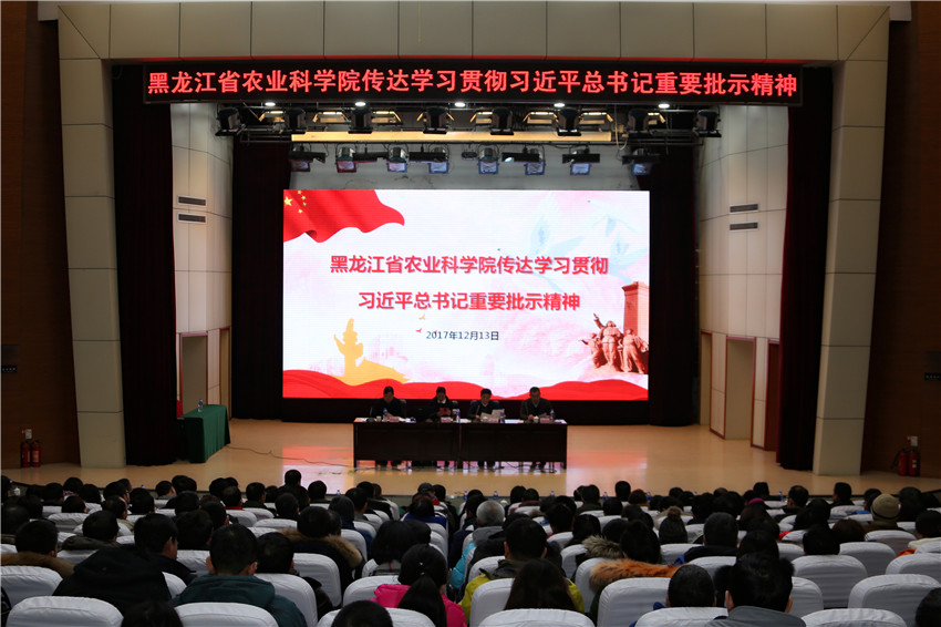 党组书记刘娣、纪检组长杨波、总农艺师闫文义、总农经师马玉祥出席会议并进行了传达。会议由杨波组长主持。全院在哈各研究所(分院、中心)的近500名党员参加了会议。