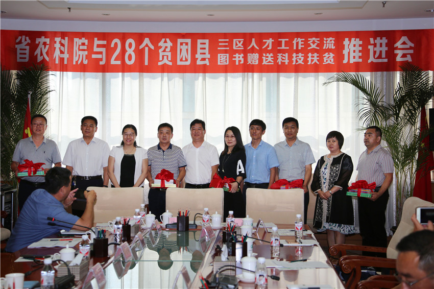 8月24日下午,我院“三区”工作推进交流会暨科普图书捐赠仪式在主楼214会议室举行。我院党组书记刘娣、总农艺师闫文义、科技推广处处长马冬君及省科技厅农村科技处副处长闫志金、政策法规处调研员孙宝林现场为28个贫困县赠送了《现代农业新技术系列科普动漫丛书》等科普作品。该套“丛书”涵盖种养殖业两大产业,涉及十类种养殖技术,总计4.634万册(张)。以东北民俗文化为背景,采用图文并茂的动画形式,融合小品、二人转、快板书、顺口溜等多种喜闻乐见的民俗元素,图解水稻、玉米、大豆、马铃薯、经济作物最新栽培技术和奶牛、肉牛、猪的养殖技术。