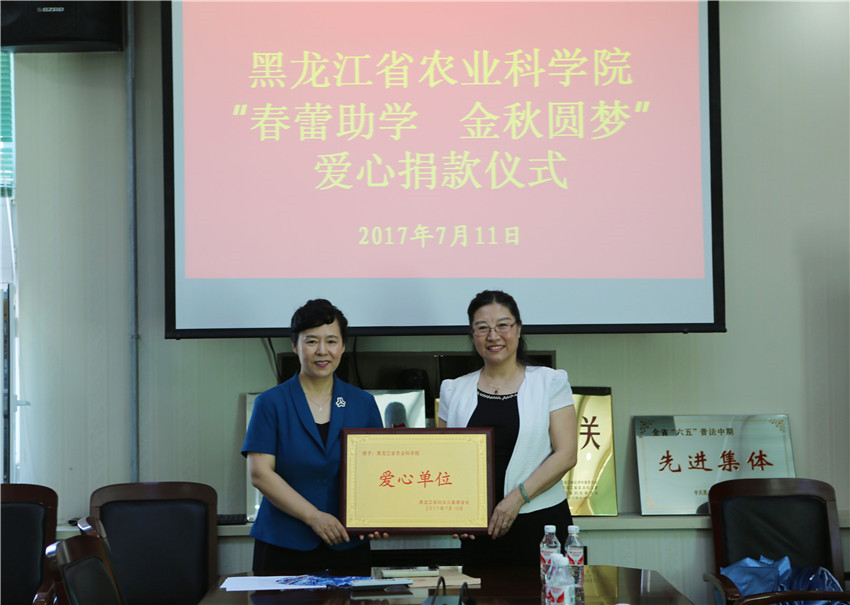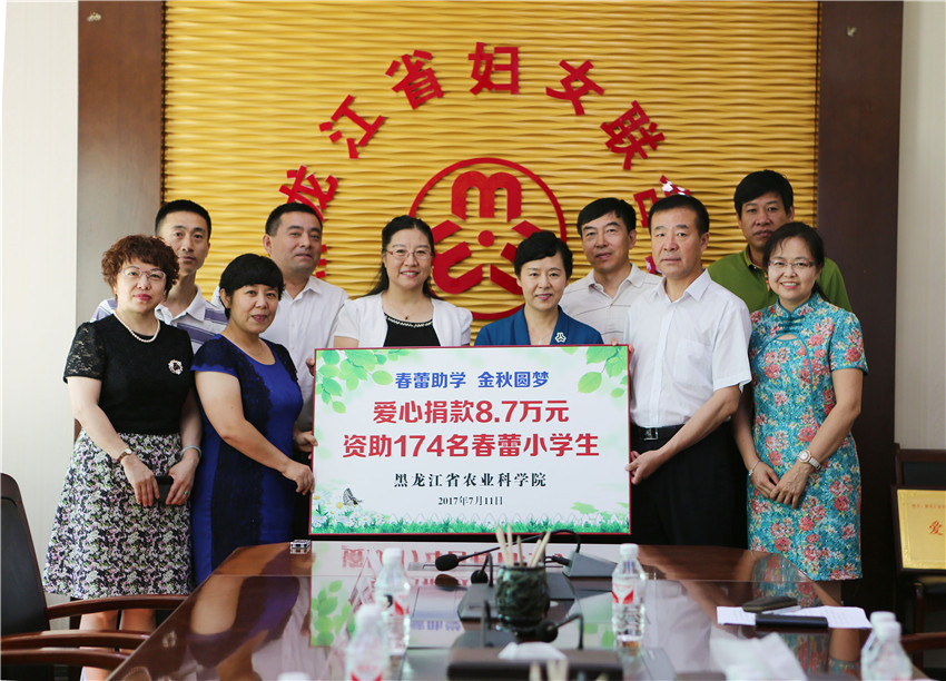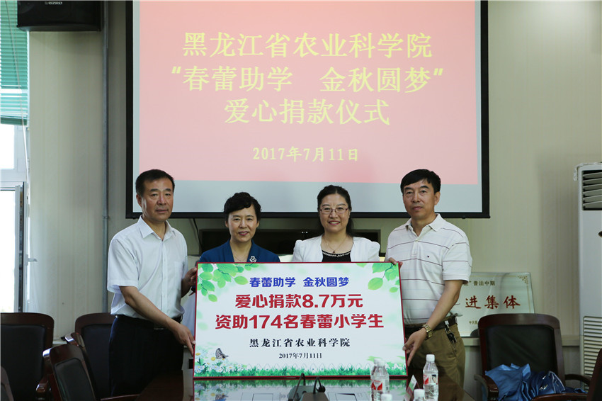 7月11日上午,我院党组书记刘娣带领在哈部分捐款代表到省妇女儿童基金会,将饱含农科人浓浓爱心的8.75652万元春蕾助学捐款交到了省妇联副主席白锦婵、省妇女儿童基金会主任李晓明手中。刘娣书记表示,这次捐款只是农科院对春蕾女童帮扶的一个开始,今后我们将通过结对子等各种方式将助学工作继续延续下去。