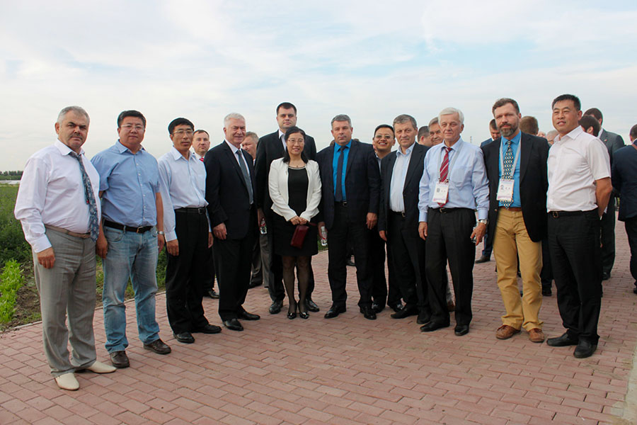 6月15日,哈尔滨市道外区区长刘兴阁陪同乌克兰驻华使馆特派全权大使焦明·奥列格·阿列克谢耶维奇、乌克兰苏梅州州长卡罗契卡·尼古拉·阿列克谢耶维奇等一行60余人到我院黑龙江国家现代农业示范区参观。我院党组书记刘娣接待和讲解。院办公室主任马玉祥、示范区主任李铭丰陪同接待。