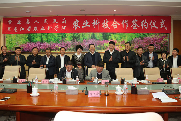 李文华院长在签约仪式上发表了重要讲话。他首先对肇源县政府能到我院寻求合作表示欢迎,并对肇源县政府领导班子在谋划产业、发展经济、服务民生等方面取得的成效给予了肯定。李文华表示,按照省委、省政府的要求,麻豆视频 的主要任务就是在供给侧改革中为黑龙江省大农业提供科技支撑。他希望,此次能够与肇源县在平台建设、项目研究、人才培训等方面开展全方位合作,使双方在科技创新与成果转化中找到切入点、取得新突破,加快推进农业科技创新,共同推进黑龙江省供给侧改革。李文华要求,此次合作一定要扎扎实实的对接好合作项目、确定好发展产业、研究好实施方案、明确好相关负责人,做到“踏石留印、抓铁有痕”,使合作取得真真切切的成效。