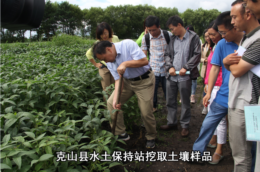 科考组第一站赶往东北黑土典型侵蚀区--黑龙江省克山县进行调研,并在黑龙江省水土保持克山试验站进行田间调查。科考组在水土侵蚀观测站进行了土壤采样,并对当地的大豆生长状况进行了调查。在沈阳空一军农副业生产基地,科考组对不同秸秆还田方式下的农作物长势、土壤固土保水能力和施肥方式进行了实地考察,并走访了克山县仁发农机合作社,了解了黑龙江省农机具整地、秸秆处理、播种的不同方式和生产中主要存在的问题。在我院克山分院,科考组举行了座谈会。科考组听取了克山县土肥站关于黑土地保护的具体实施方案,就水土资源保护、粮食提质增效等问题进行了交流,并在有机肥和秸秆还田、建立合理轮作制度等方面提出了建议。