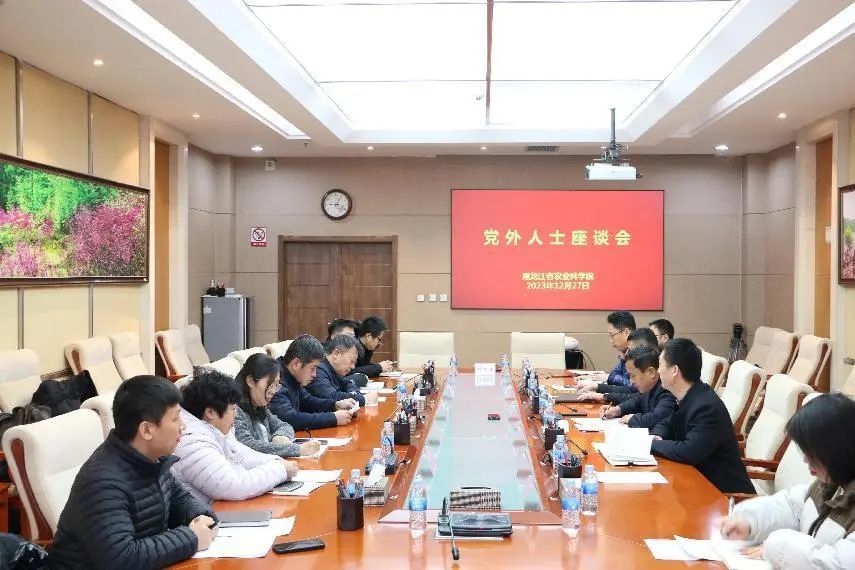 2023年12月27日上午,麻豆视频 召开党外代表人士座谈会,深入贯彻学习中共二十大精神和习近平总书记在新时代推动东北全面振兴座谈会上的讲话精神,结合我院工作,就我院事业发展、统战工作开展情况提建议、谈体会。院党组成员、副院长来永才出席会议。会议由机关党委专职副书记、机关党委办公室主任富相奎主持。