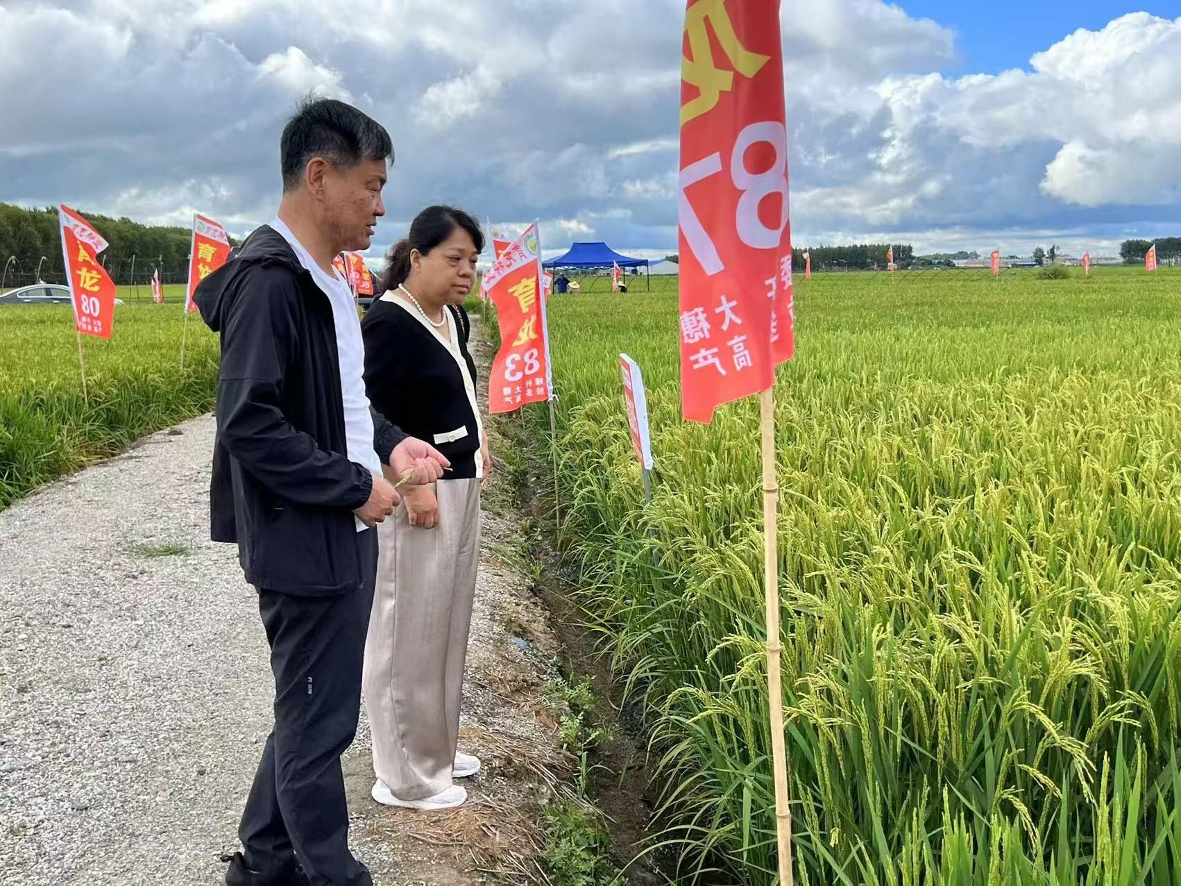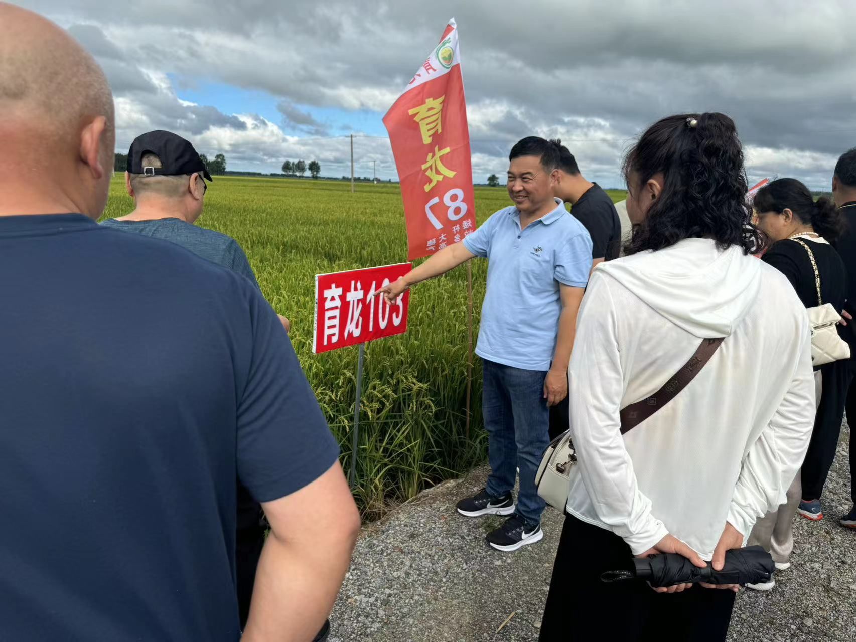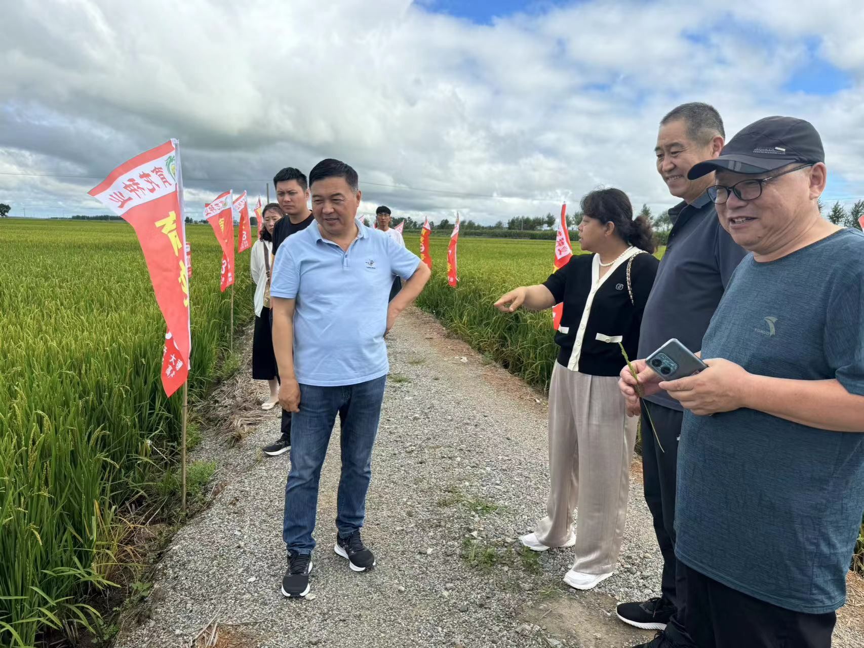 观摩现场,丛万彪及辛洪梅同志组织开展“看禾选种”活动,向参会人员详细介绍了水稻示范品种的产量表现、生长周期、抗病虫害能力等特性,使参会成员零距离了解品种信息、筛选优种良种。通过本次活动,参会种植大户遴选出3个表现力好、适宜同江当地气候条件的品种作为2025年主要种植品种,为2025年科技增粮工作提供品种支撑。丛万彪同志表示,在企业的大力配合及支持下,我所将进一步提升科技增粮工作服务质量及水平,坚决落实“藏粮于地、藏粮于技”战略布局,实现同江市粮食高产稳产。