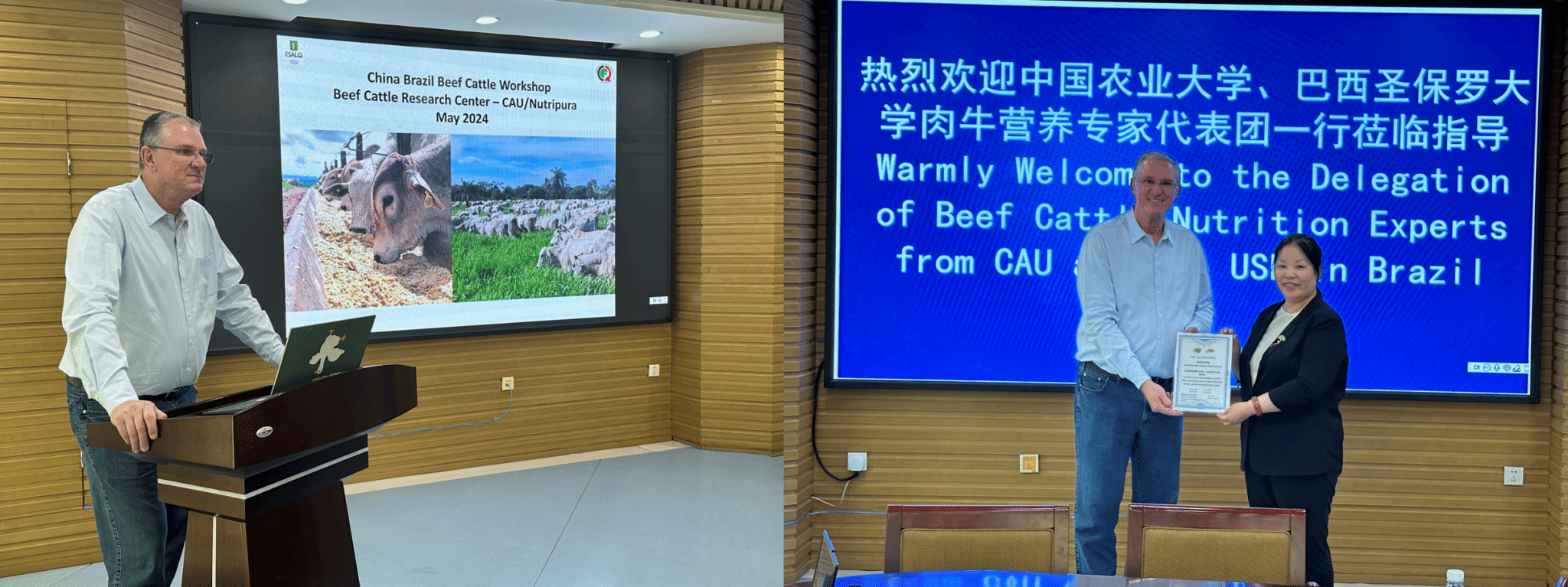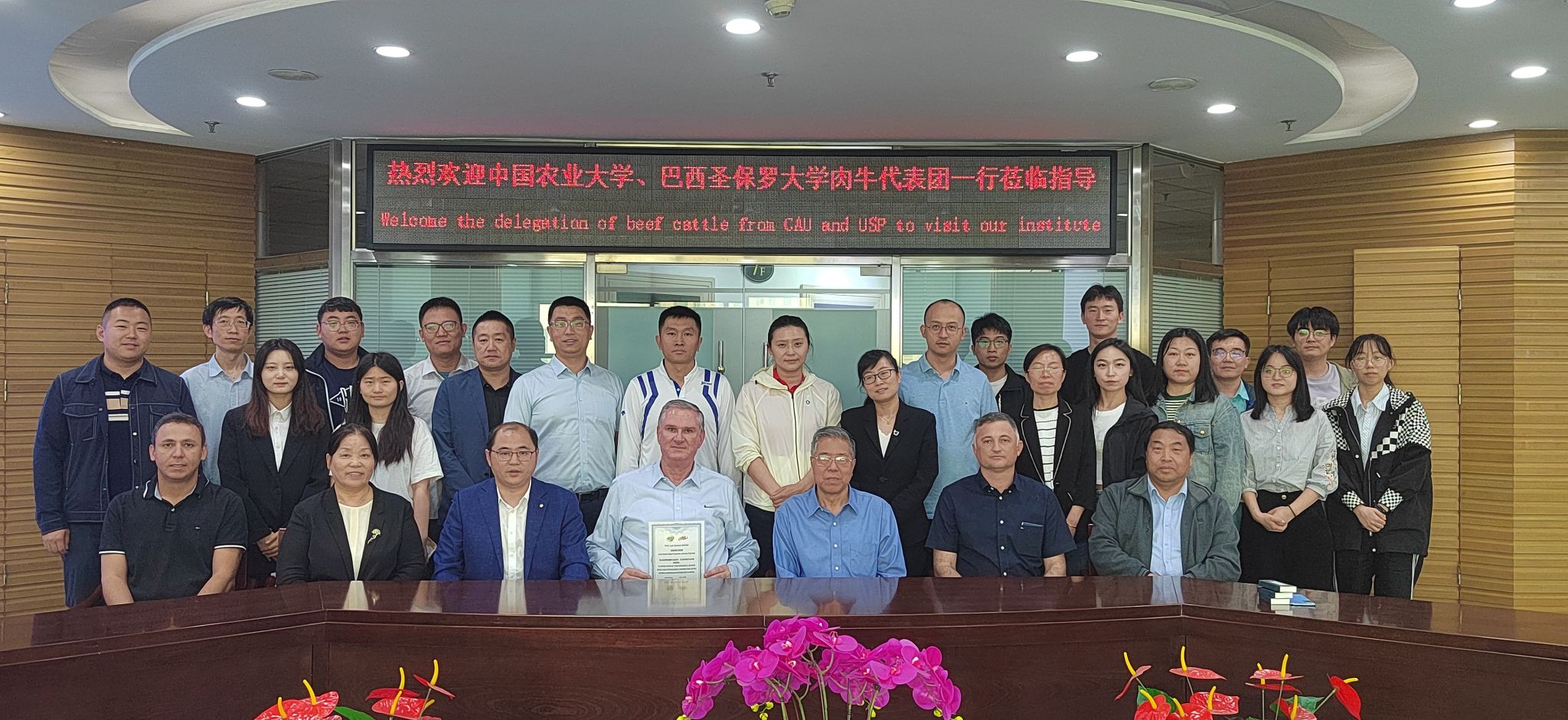 5月24日,由巴西圣保罗大学前副校长、教授路易斯·谬叟率队的巴西圣保罗大学肉牛代表团3人、中国农业大学动物科技学院教授孟庆翔教授团队3人一行达到哈尔滨。