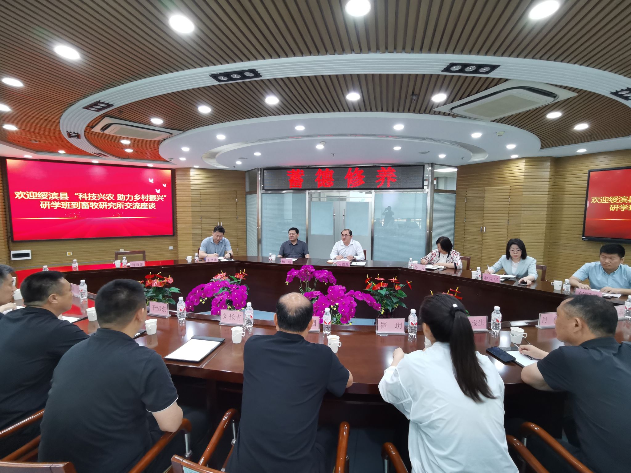 7月10日上午,畜牧研究所所长、绥滨县委副书记杨帆和绥滨县委常委刘长青等一行12人到畜牧所交流,并同畜牧所副所长、国家生猪产业技术体系岗位科学家、省生猪产业技术体系首席科学家何鑫淼、省生猪产业技术体系岗位专家王文涛、国家肉牛产业技术体系岗位科学家、省肉牛产业技术体系首席科学家孙芳、国家水禽产业技术体系岗位科学家赵秀华、畜牧所技术研发与成果转化研究室郑殿重博士进行座谈。