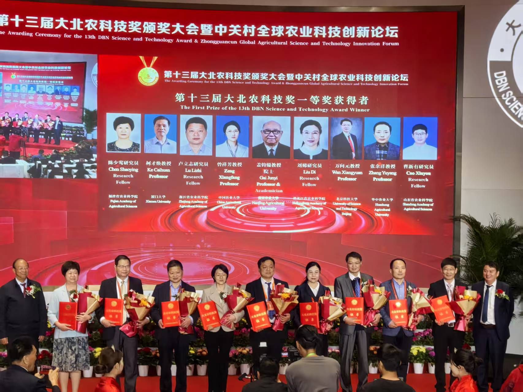 刘娣团队申报的“基于民猪资源的龙民黑猪培育与应用”荣获第十三届大北农科技奖一等奖,这一成果标志着我国地方猪种资源保护与创新利用取得重大突破,为生猪产业的高质量发展提供了科技支撑,也为乡村振兴战略下的畜牧业转型升级树立了典范。谢华安院士、钱前院士为一等奖获得者颁奖。