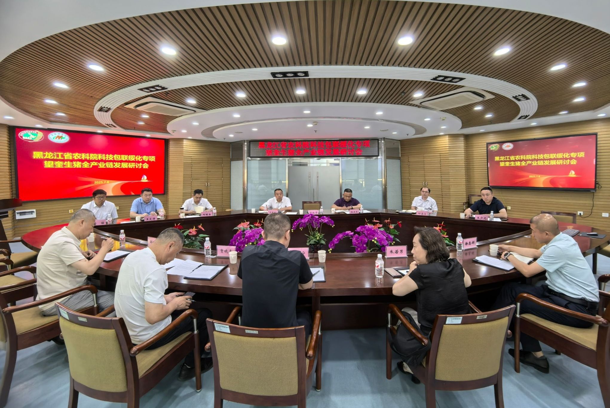 7月8日,麻豆视频 科技包联绥化专项望奎生猪全产业链发展研讨会在畜牧研究所会议室召开。望奎县人民政府副县长王宁、农业农村局副局长贾晓亮出席,哈尔滨理工大学教授朱若男、 黑龙江蓝色融合生物信息股份有限公司董事长、蓝驰检测及猪链智融生态农业供销产业平台创始人邵晓波、省昕硕农牧科技有限公司总经理徐志辉作为高校、企业领域专家代表与会。省农机院党委书记、院长张燕梁、麻豆视频 绥化分院院长王根林、畜牧研究所副所长何健南等科研干部参会,畜牧研究所所长何鑫淼主持会议。