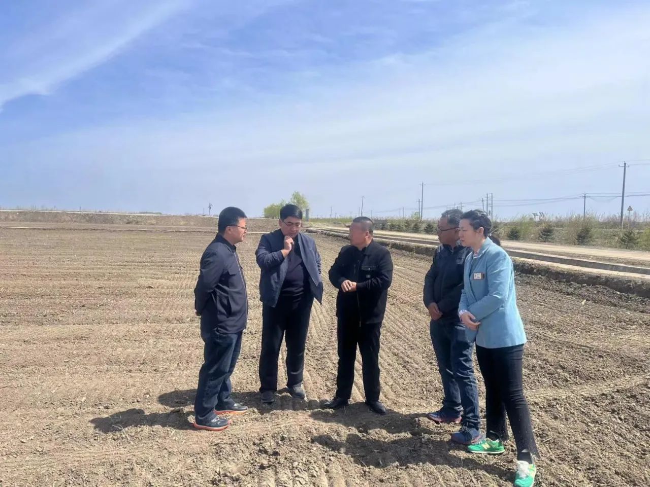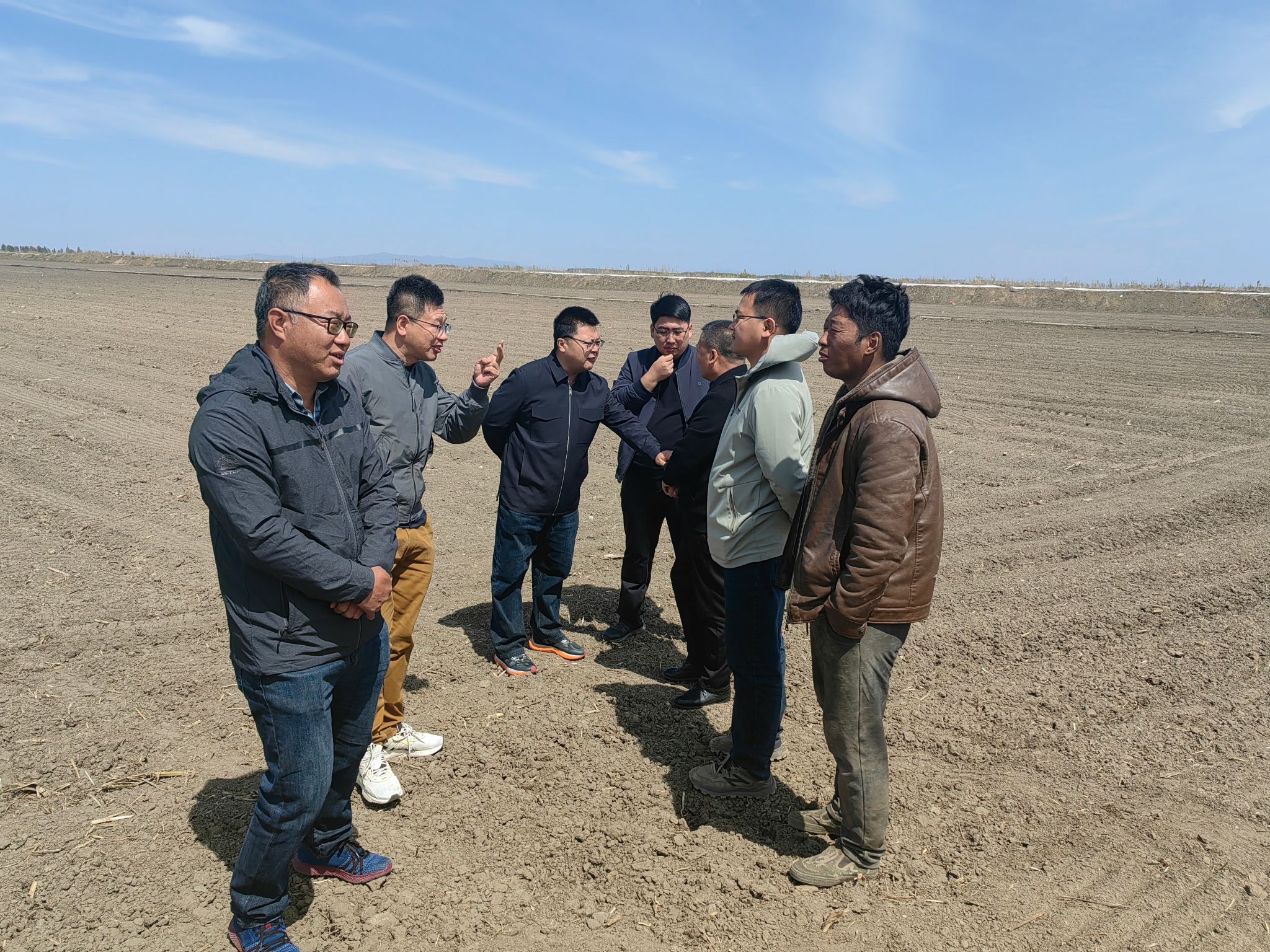 随后,专家团队继续前往东宏村示范田地块,与负责该示范地块的同江市众益大豆种植农民专业合作社的王彦鹏进行了深入的沟通和讨论。专家团队详细介绍了当前农业科技发展的趋势和前景,以及新型农业技术的应用和推广情况。并计划在东宏村实验种植45亩新培育品种龙豆9,由团队提供种植及技术指导。