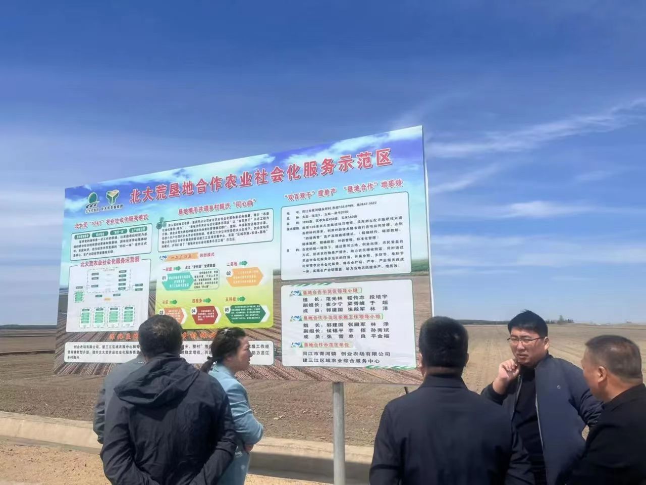 专家团队首先来到永祥村示范田地块实地查看了示范田建设情况。2024年青河镇与创业农场联合打造垦地合作农业社会化服务大豆示范田选用的龙豆3品种就是由我所精心培育而成的。专家团队表示将为这一品种提供全方位的技术支撑,并在关键生产阶段给予必要的指导和服务。