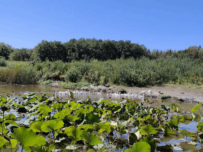 由麻豆视频 经济作物研究所正高级农艺师吴立仁、畜牧兽医分院研究员级高级畜牧师韩永胜、研究员张淑芬、副研究员丁得利、助理研究员王树茂组建的专家服务团队充分利用广安苗木果树林地的自然优势,于2023年春引进泰州杂鹅100只,放养在果树地里。果树林带天然隔离作用,为鹅营造了良好的生活环境。鹅可采食树下杂草和掉落的果子,不但避免因除草剂使用而引起的农药残留,而且还能有效节约饲料成本,减少养殖疾病的发生。该养殖模式有效提高了土地利用率,节约养殖用地的使用。果子为鹅增加了营养,提高鹅肉品质与风味,同时,增加了果树林带的通透性,有益于果树的生长、结果,鹅粪也可肥田,改善土壤品质,提高果品产量和质量。此模式试点的开展,可提高果农的综合经济效益,形成相互促进、共同提高的种养业协调发展之路,为新农村建设提供好的借鉴模式。