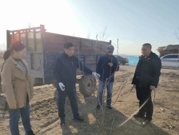 随后技术服务团来到延河镇盘龙村,吴立仁研究员向驻村工作队传授果树修剪技巧和果树施肥等管理方法,现场演示如何根据果树具体情况辨别哪些枝条应舍弃或保留,根据枝条生长情况等因素选择合适枝条,并现场为70多棵果树修剪了枝条。