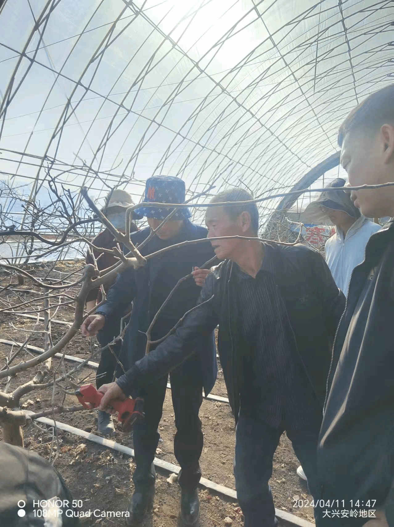 下午,在呼玛县韩家园镇副镇长吴量、韩家园村第一书记徐哲等人的陪同下,到蓝靛果、树莓种植试验地观看树苗的生长情况,并对农民进行了春季果树修剪技术指导,建议在大棚准备一个悬挂式温度计随时观察温度变化,做好大棚湿度的控制工作,尤其注意夜晚低温、“倒春寒”天气导致冻苗的发生,建议做好应急措施,及时反馈,确保果树苗在春季天气复杂的变化下能够正常生长。