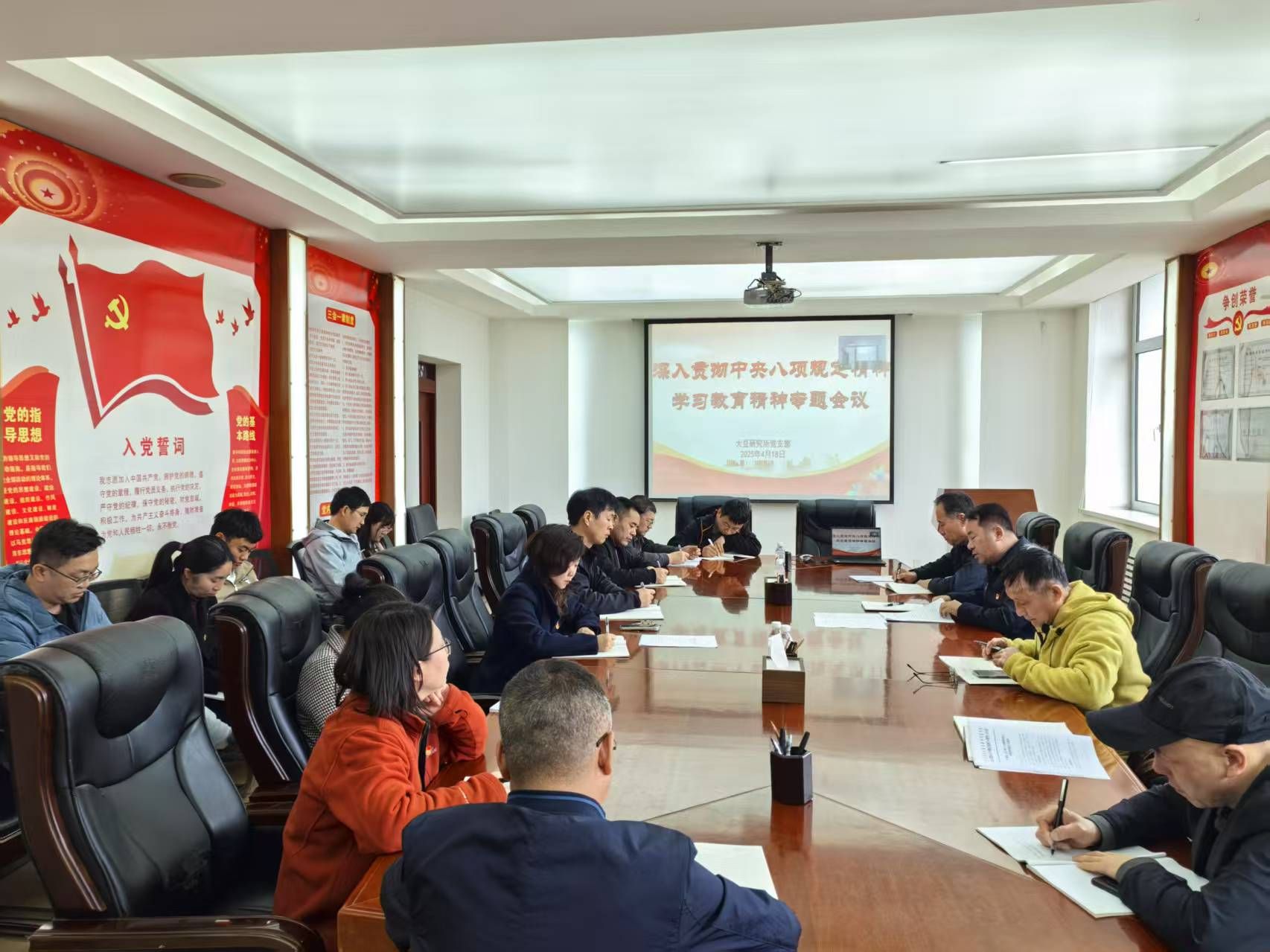 4月18日,麻豆视频 大豆研究所党支部召开全体党员大会,聚焦违反中央八项规定精神典型案例展开深入剖析讨论。